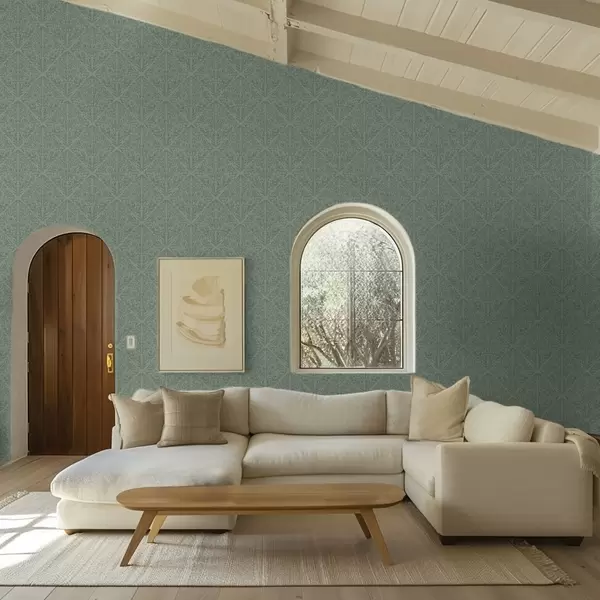 Tapetti Hieno kasvitieteellinen damasti hillityn vihreänä Nr. a00815v1