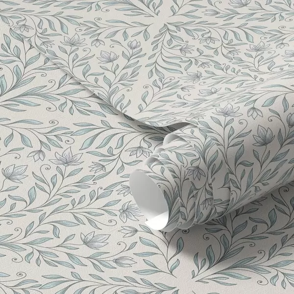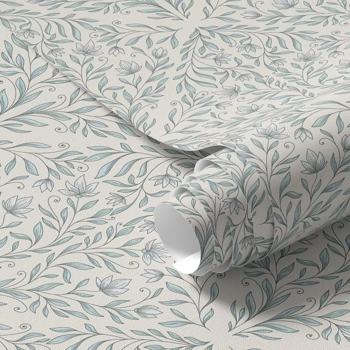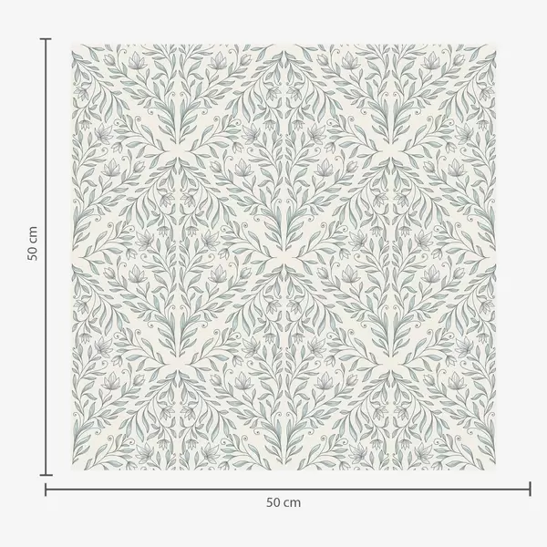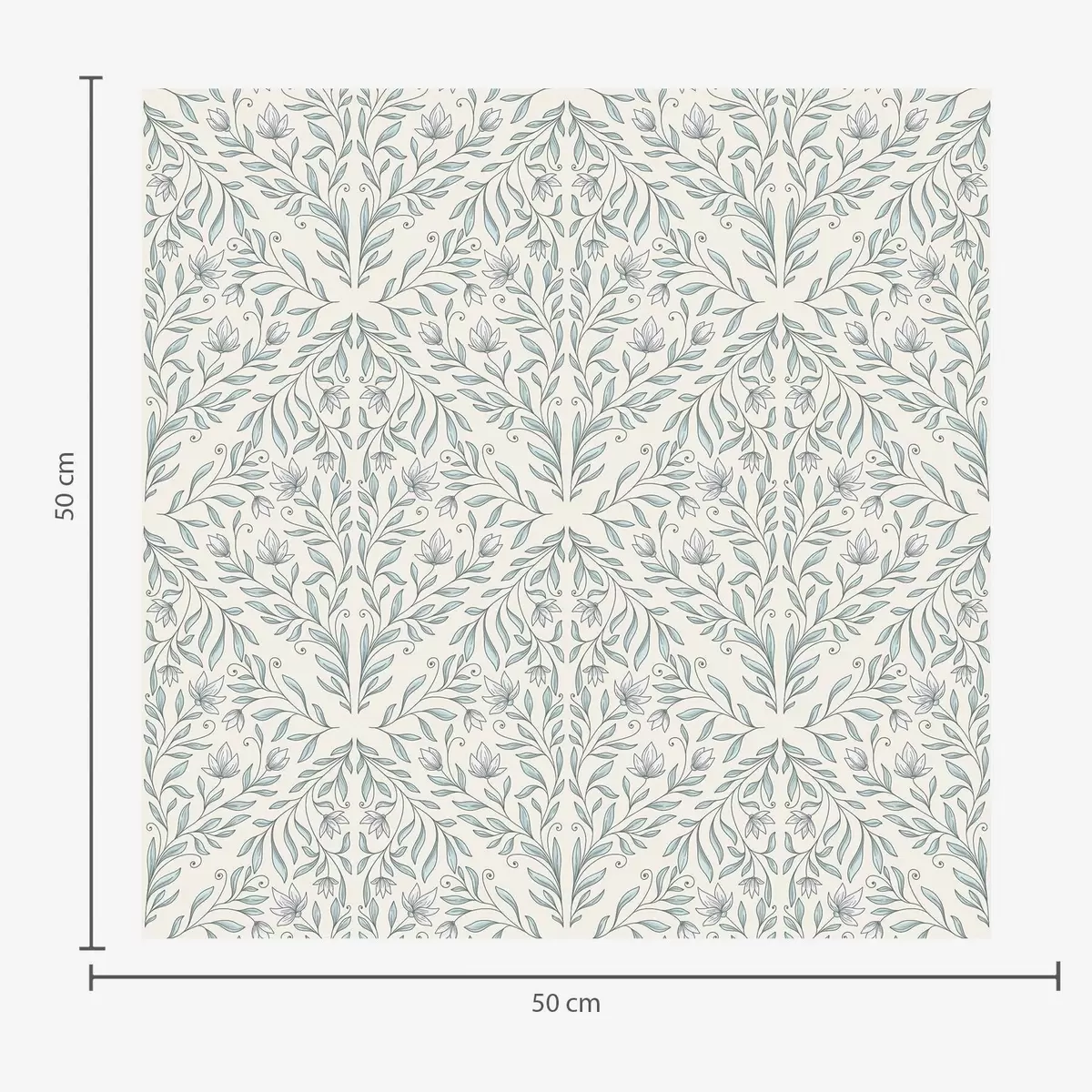Tapetti Pitsimäiset kuvioinnit kermanvalkoisella pohjalla, turkoosilla reunuksella Nr. a00815v4