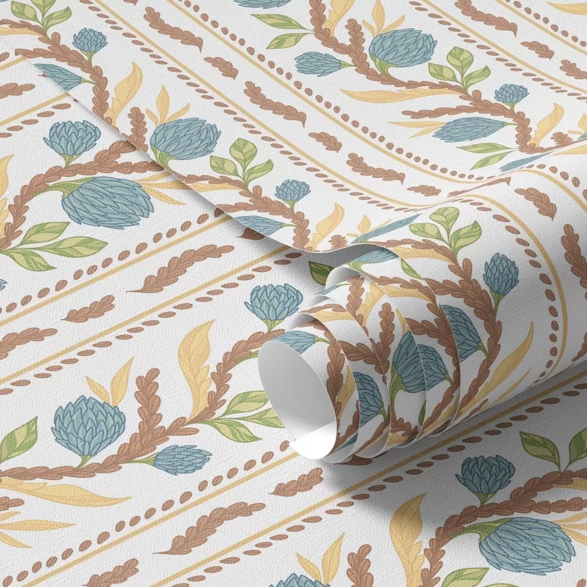 Tapetti Pystysuuntaiset raidat sinisillä kukilla Nr. a00816v2