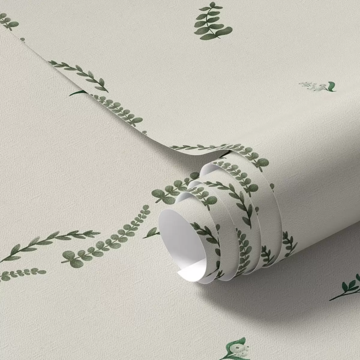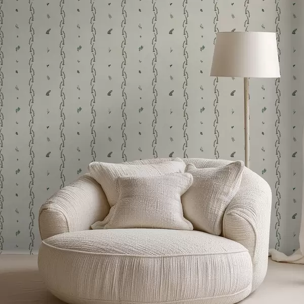 Tapetti Harvat vihreät versot pystysuorassa rytmissä, kermanvärinen tausta Nr. a00818
