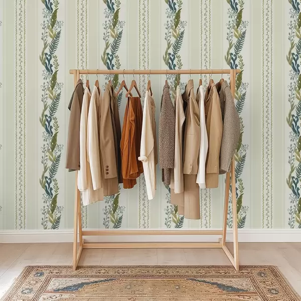 Tapetti Leveät raidat ja maalaukselliset oksat sinisen ja oliivin sävyissä Nr. a00825