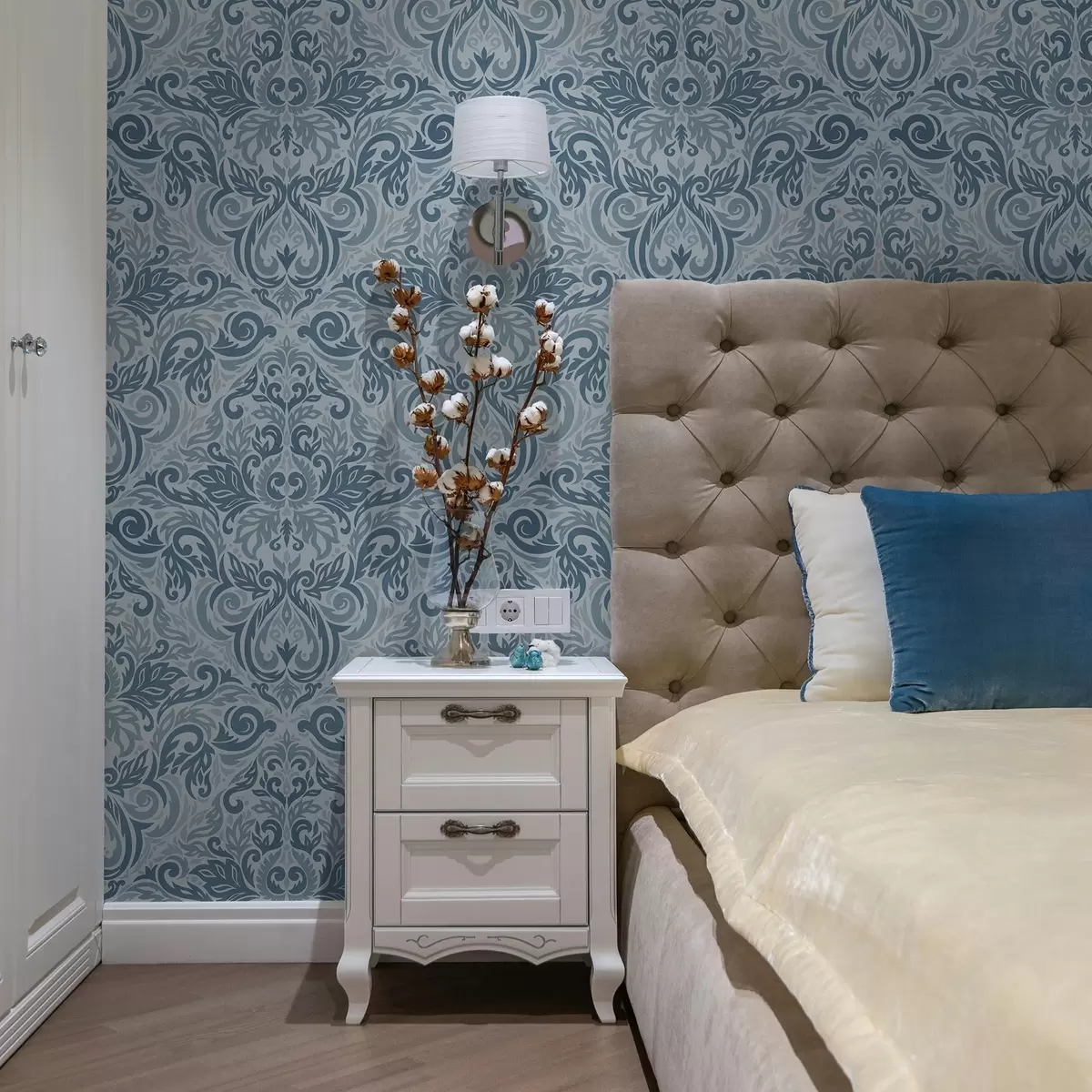 Tapetti Klassinen damasti, syvän sininen vaaleansinisellä pohjalla Nr. a00826