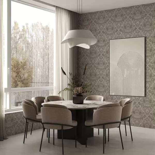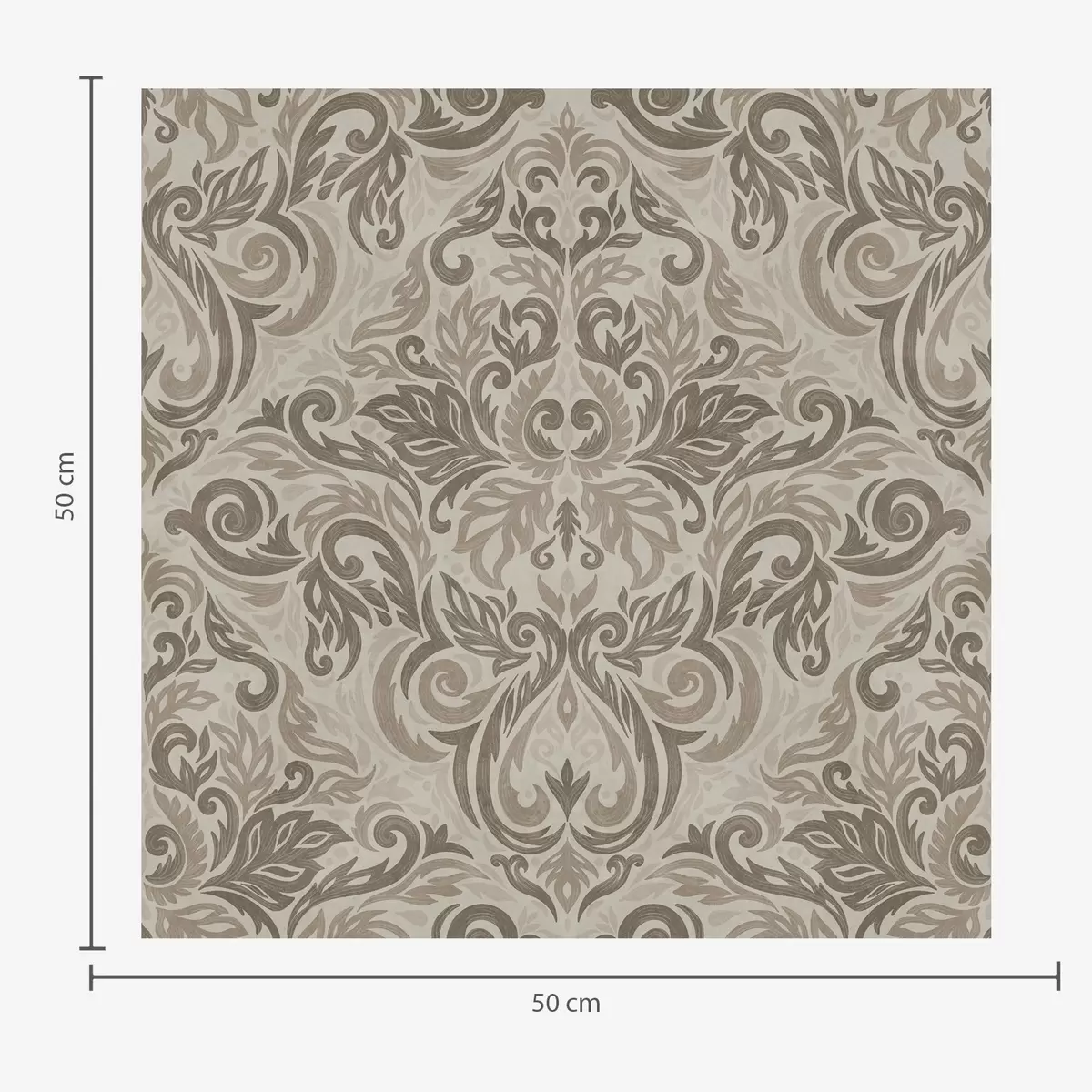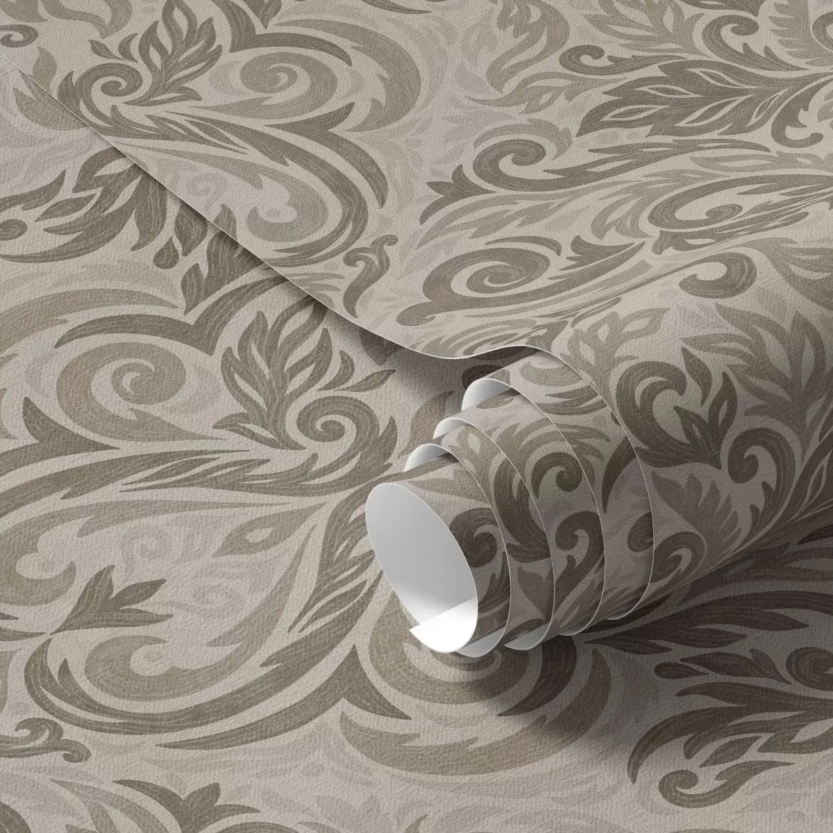 Tapetti Damaskia lämpimissä harmaanruskeissa sävyissä vaalealla pohjalla Nr. a00826v3