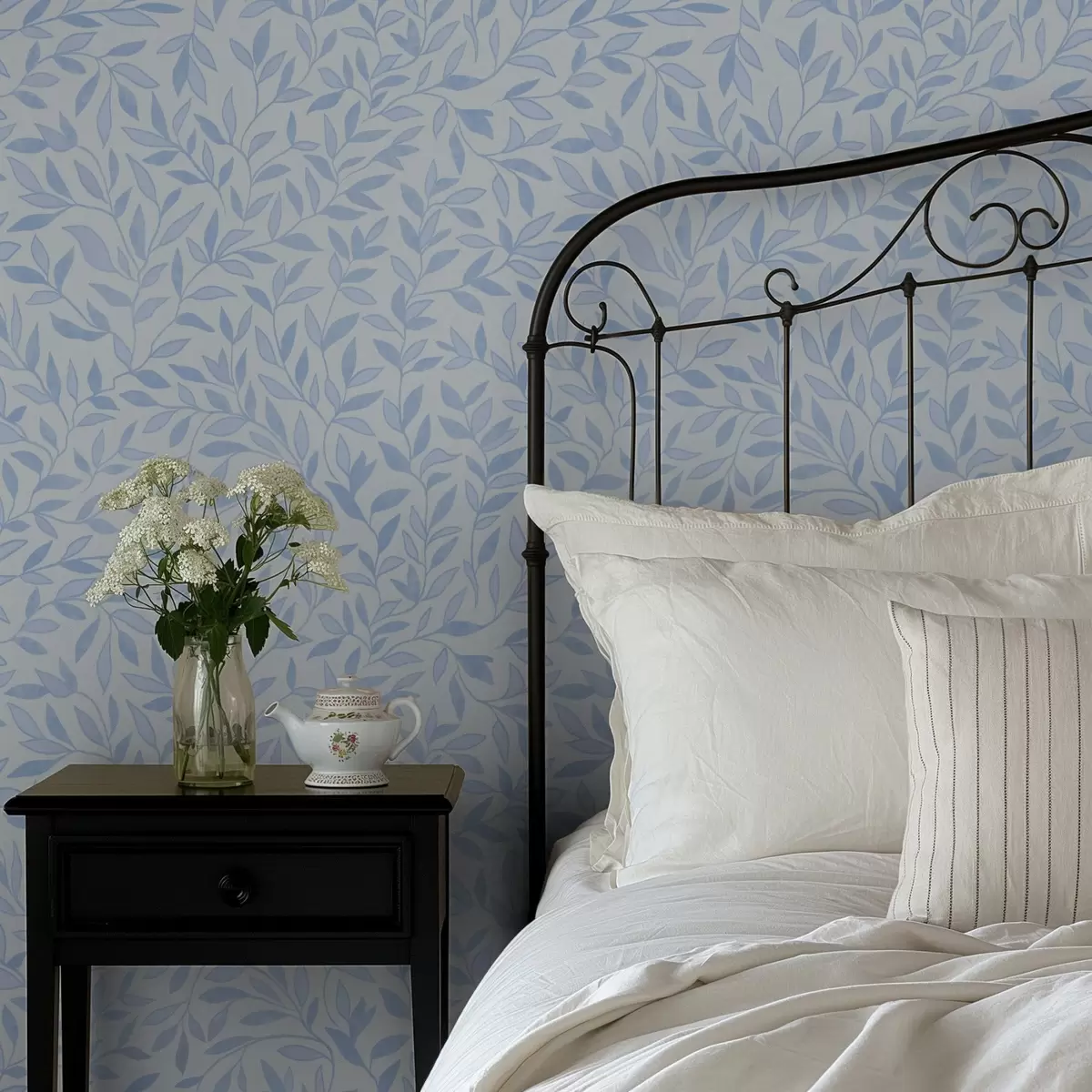 Tapetti Siniset oksat, joissa on vaaleansinisiä lehtiä Nr. a00842
