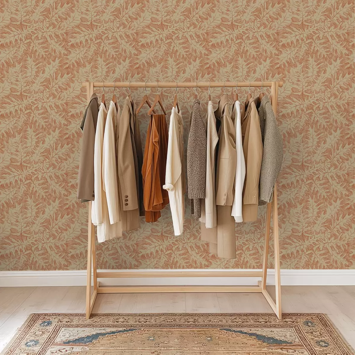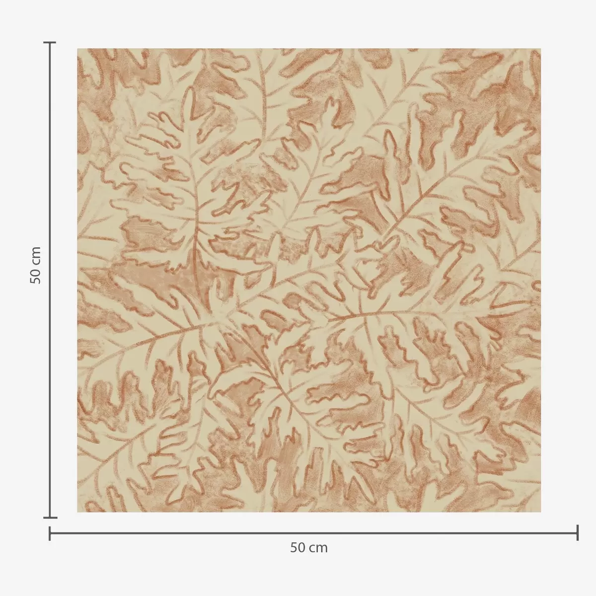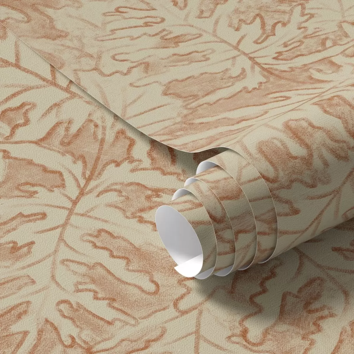 Tapetti Suuret tammilehdet terrakottana kermanvärisellä pohjalla Nr. a00846