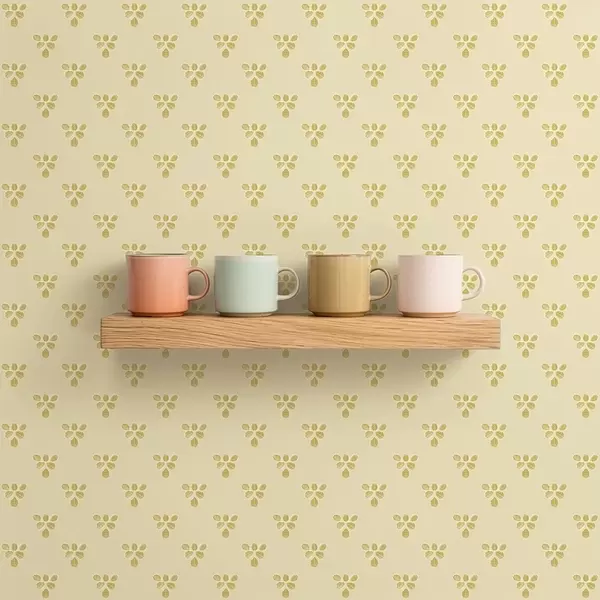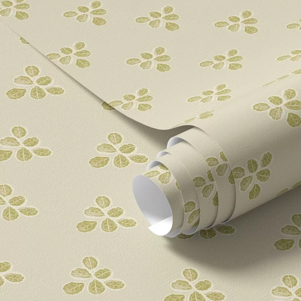 Tapetti Pieni toisto: kolmen lehden rypäs kermanbeigen värisellä pohjalla Nr. a00848