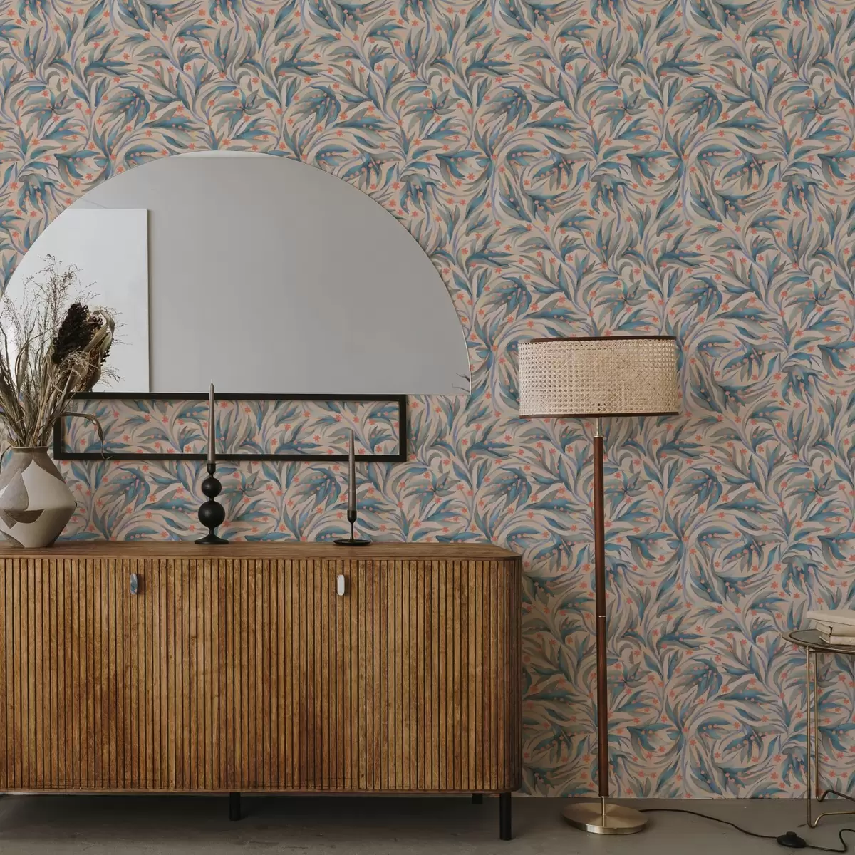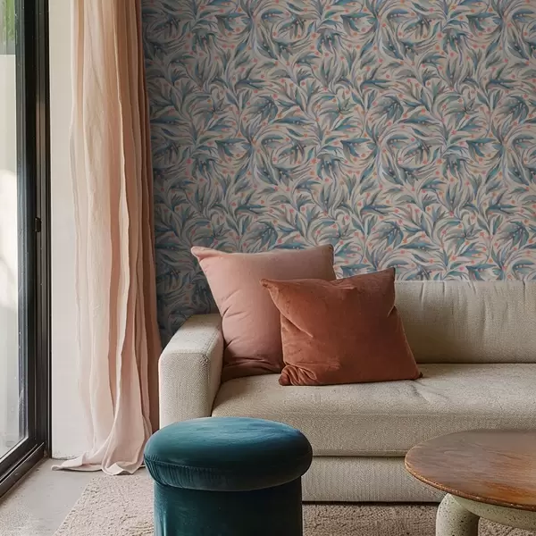Tapetti Abstrakti sininen lehtien ja korallikukkien kuvio Nr. a00852