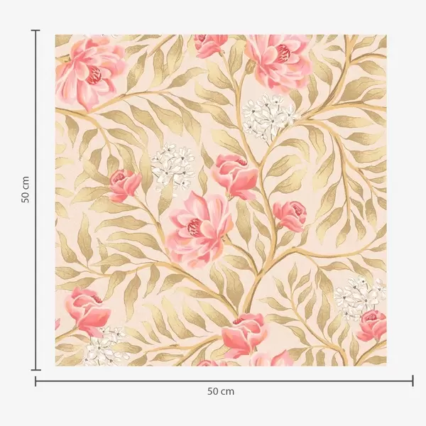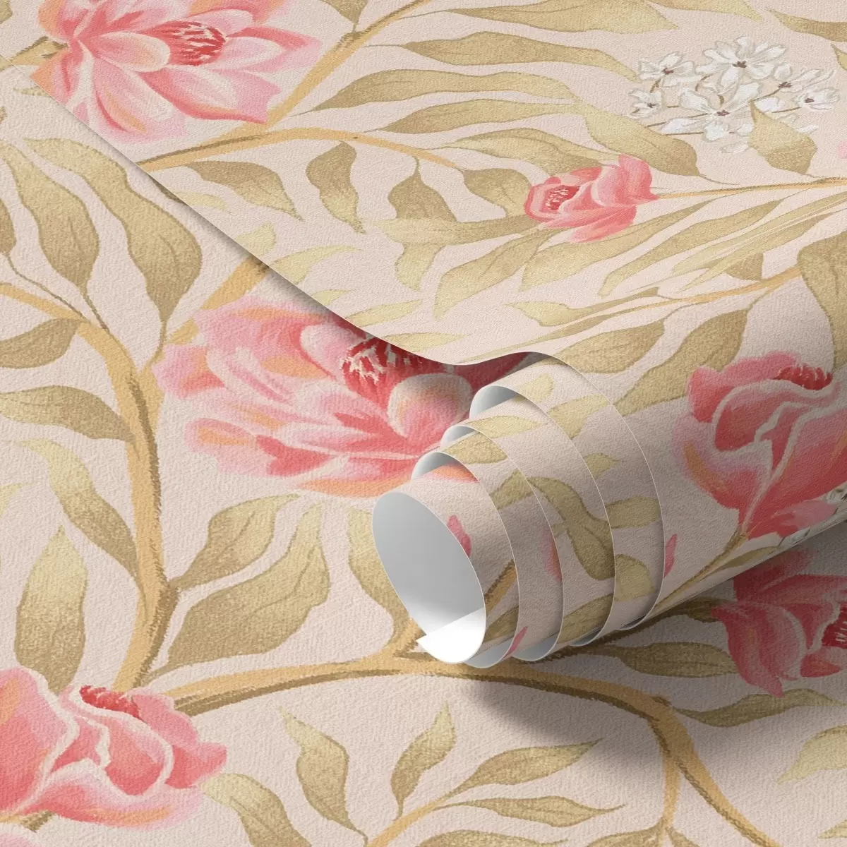 Tapetti Vaaleanpunaiset kukat, valkoiset kukat ja okranväriset lehdet Nr. a00855