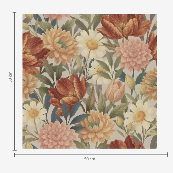 Tapetti Vintage-puutarha kukkii lämpimissä terrakotta- ja persikan sävyissä Nr. a00874