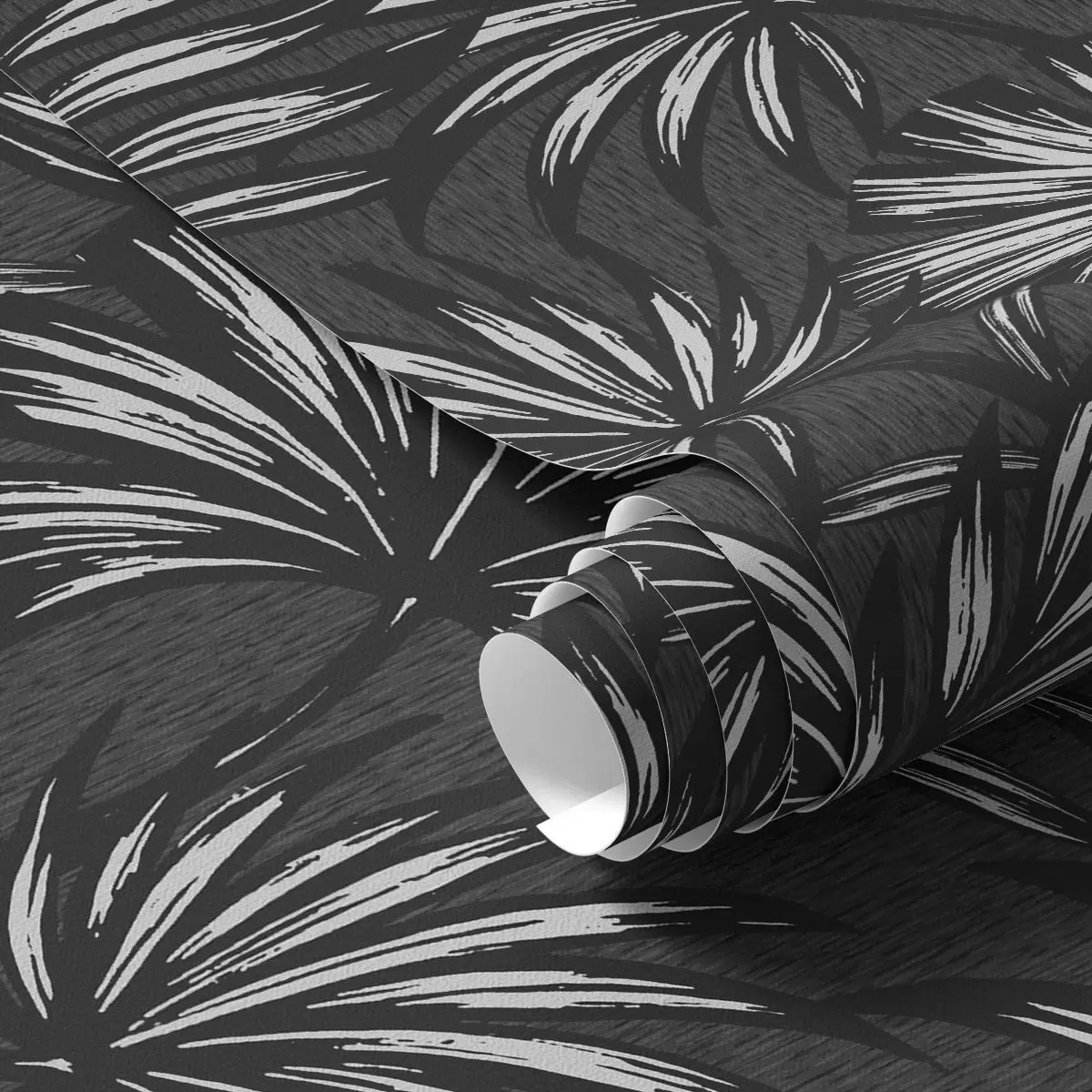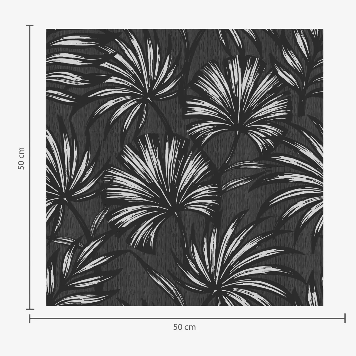 Tapetti Mustavalkoiset palmunlehdet tummalla taustalla Nr. a00891