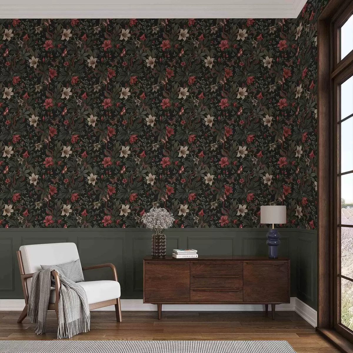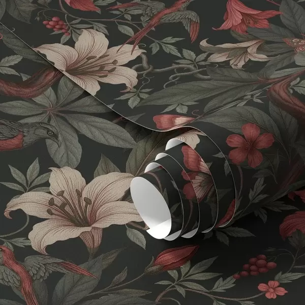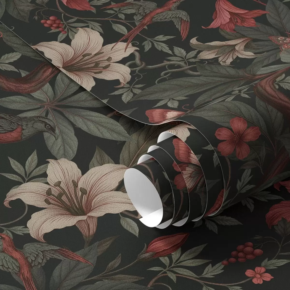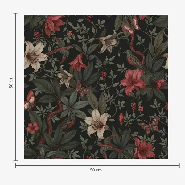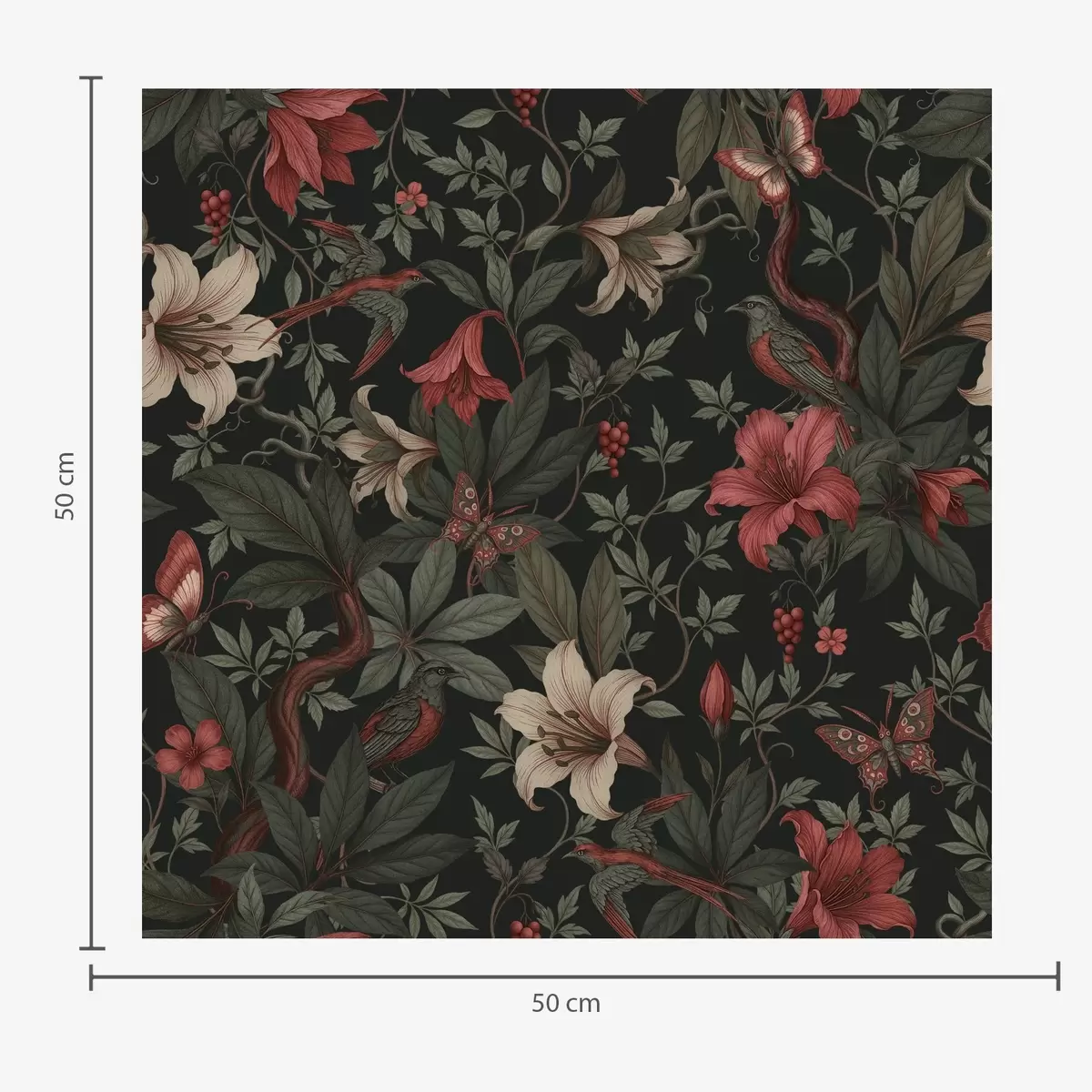 Tapetti Tummat viidakon kukat, lintuja ja perhosia Nr. a00895