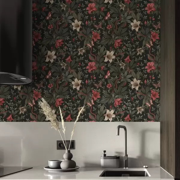 Tapetti Tummat viidakon kukat, lintuja ja perhosia Nr. a00895