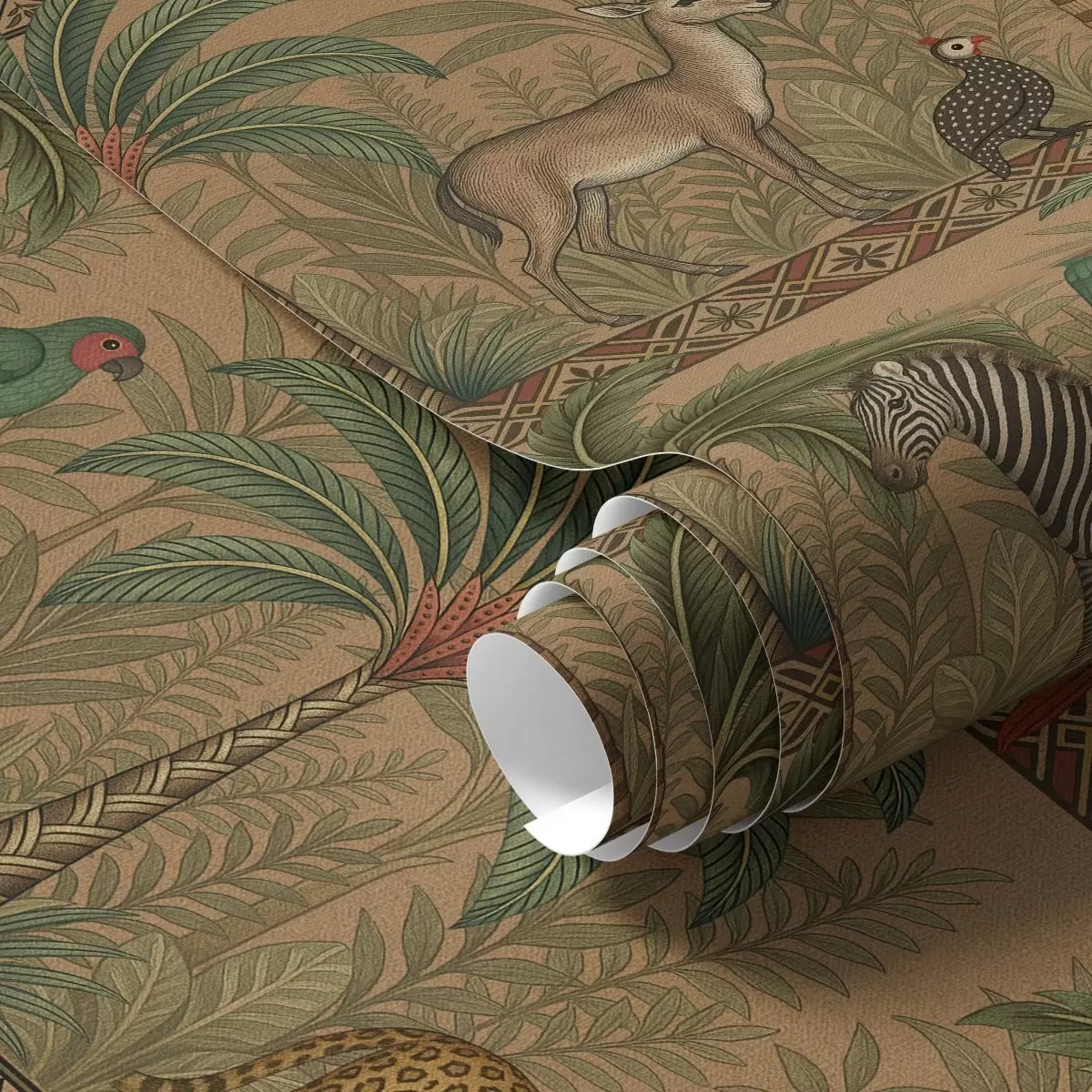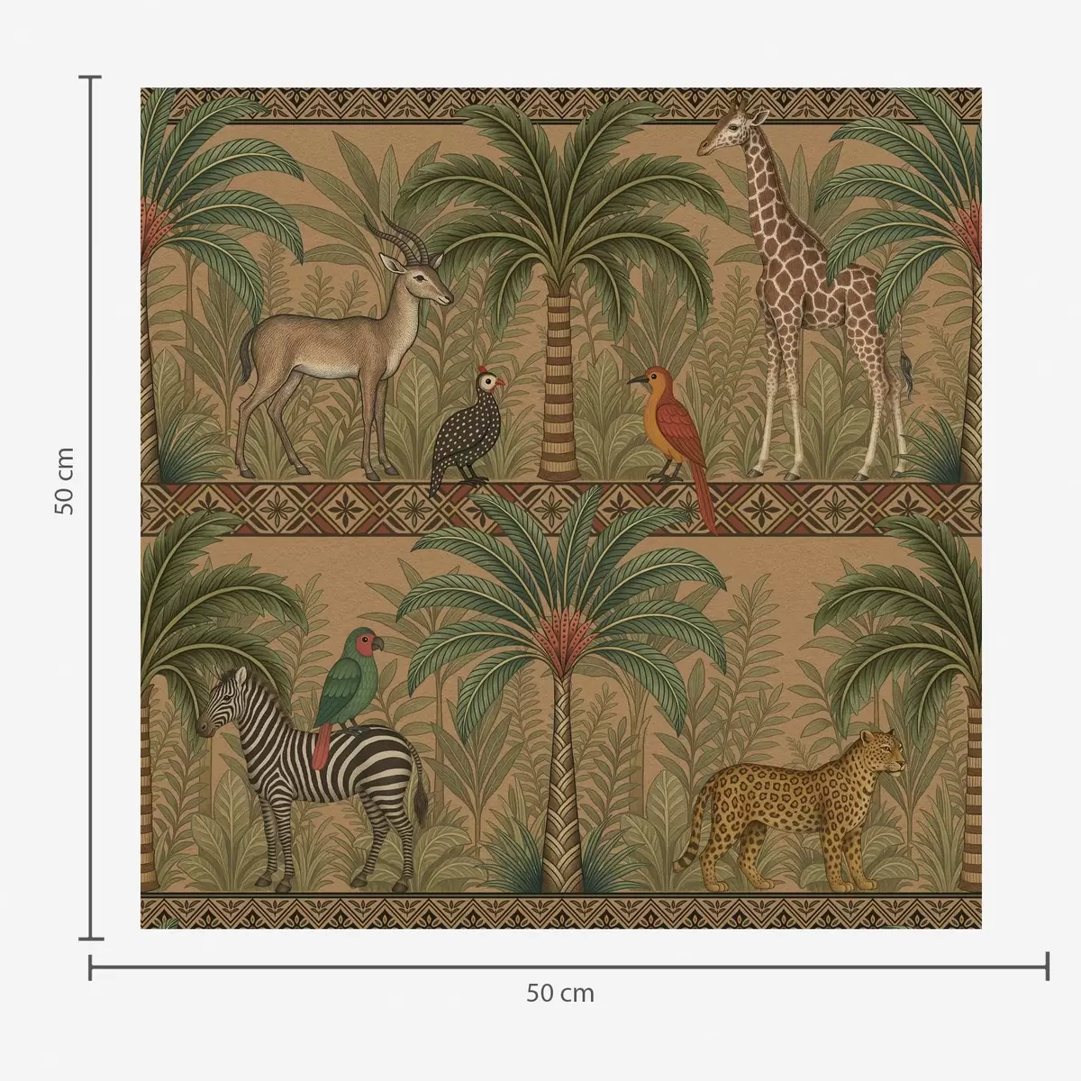 Tapetti Koristeelliset savannieläimet palmujen ja reunusten välissä Nr. a00898