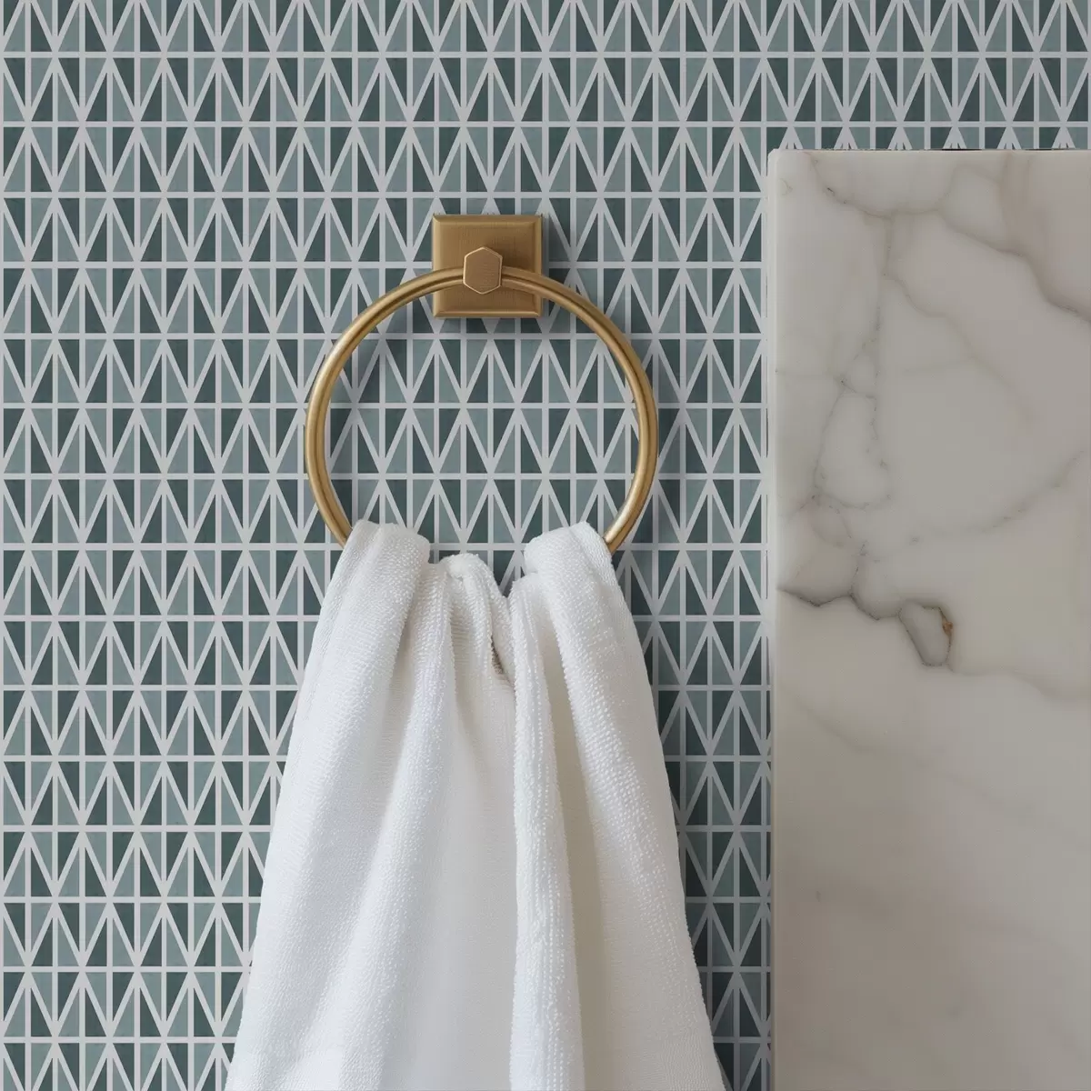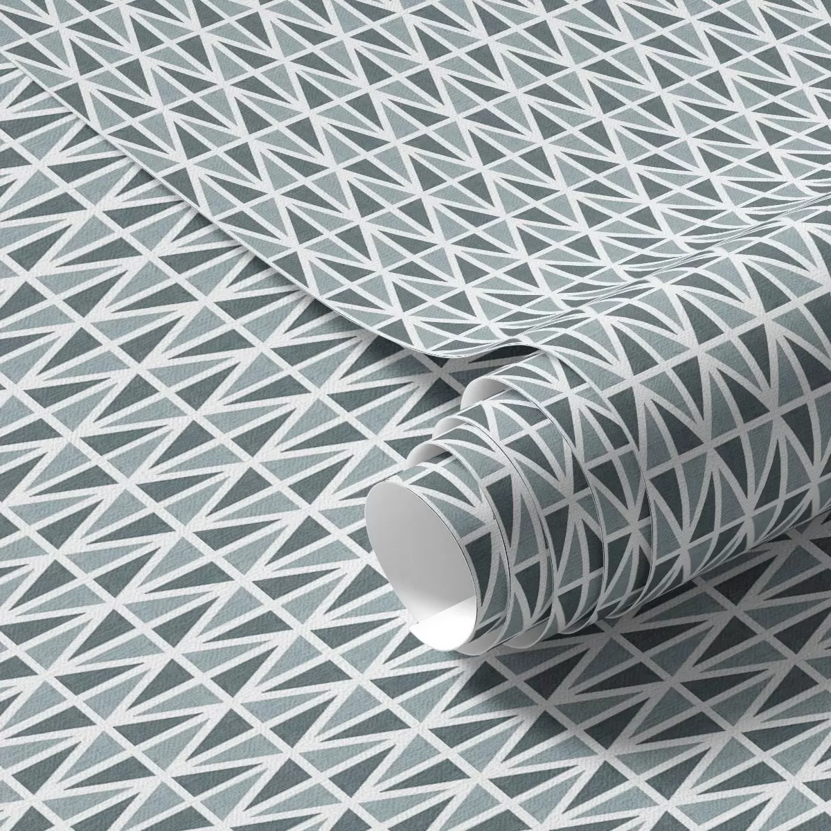 Tapetti Hieno valkoinen timanttikuviollinen ristikko hillityn sinivihreän päällä Nr. a00903
