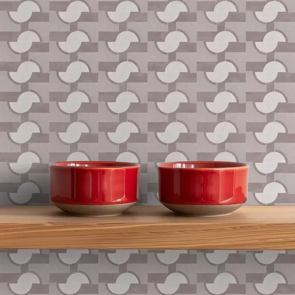 Tapetti Mauve-moduulilaatat, joissa on toisiinsa liitetyt puolipyörät Nr. a00915