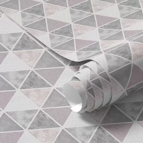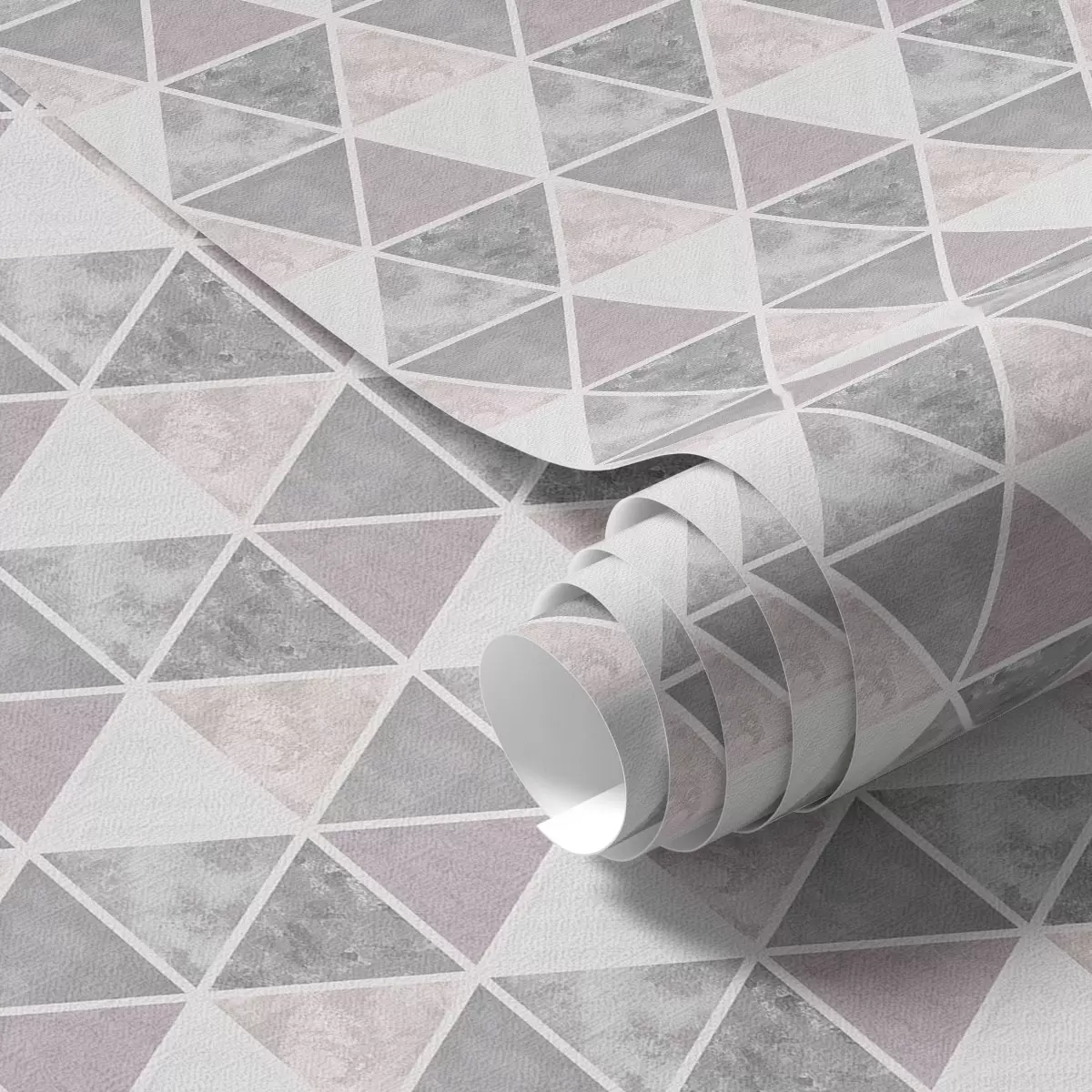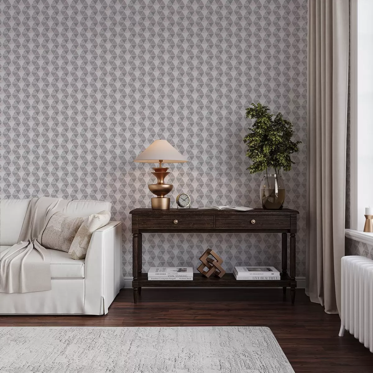 Tapetti Geometrinen kolmiokuvio harmaissa ja jauhemaisissa sävyissä Nr. a00920