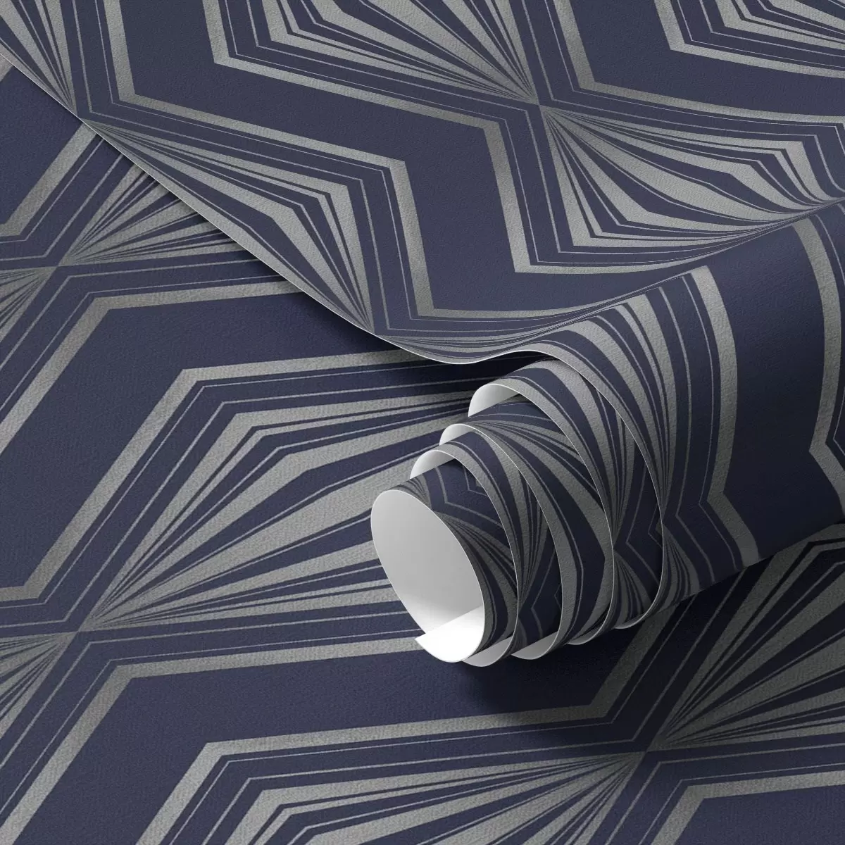 Tapetti Geometriset säteittäiset timantit tummansinisellä taustalla Nr. a00925