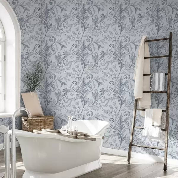 Tapetti Vaalean jääsiniset, käpristyneet lehdet, joissa on lyijykynän tekstuuri Nr. a00935v1