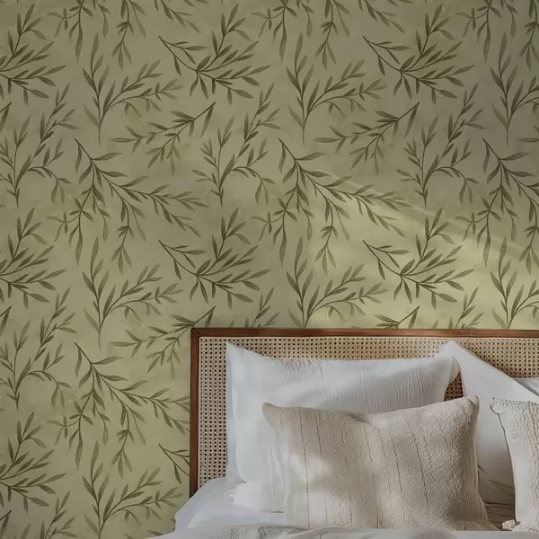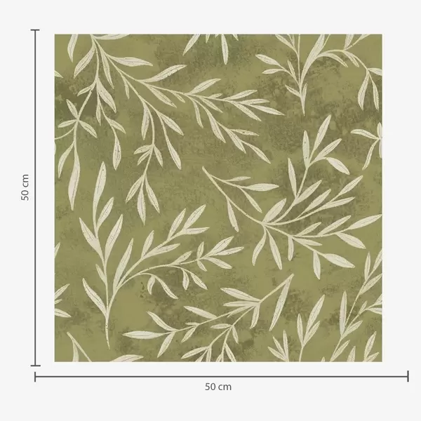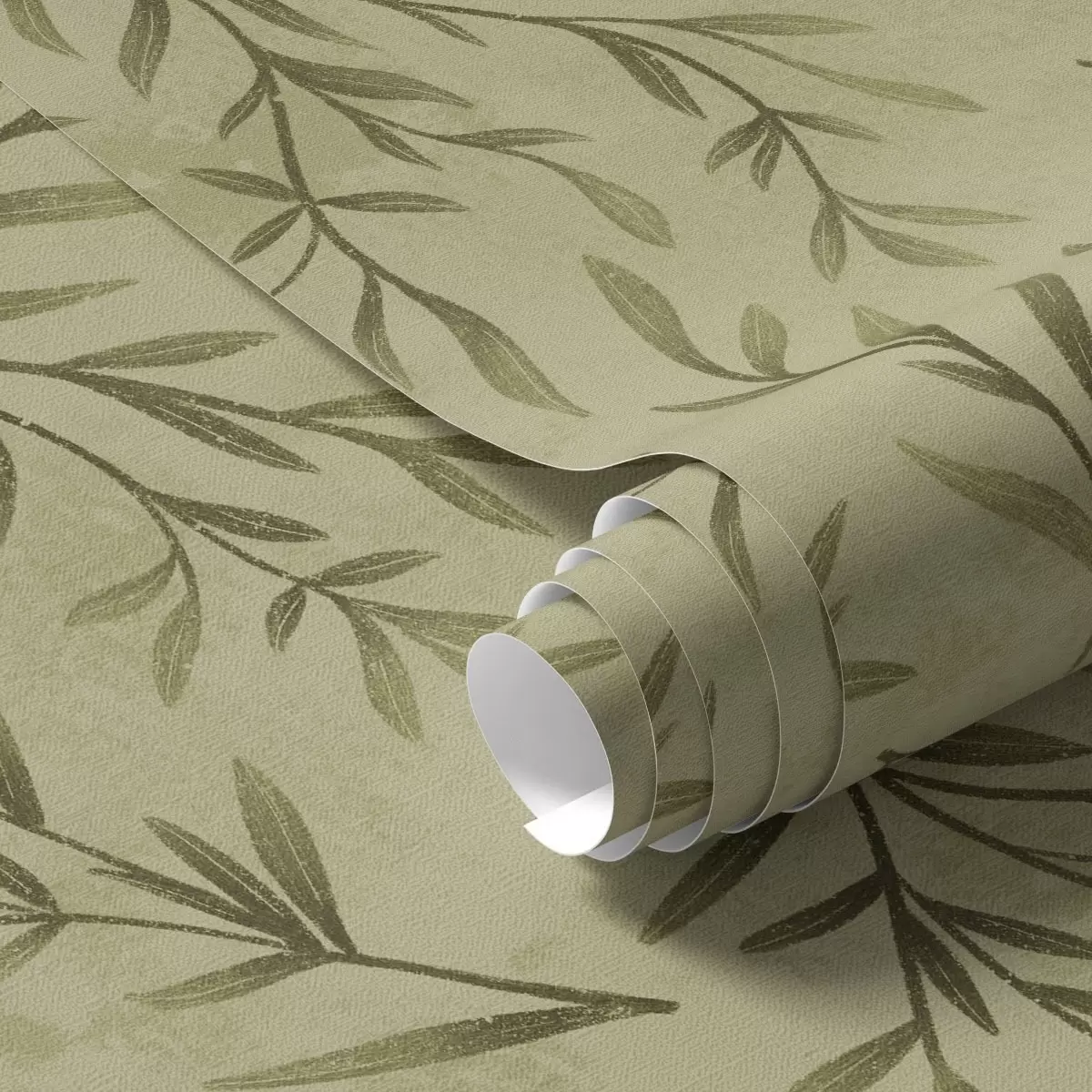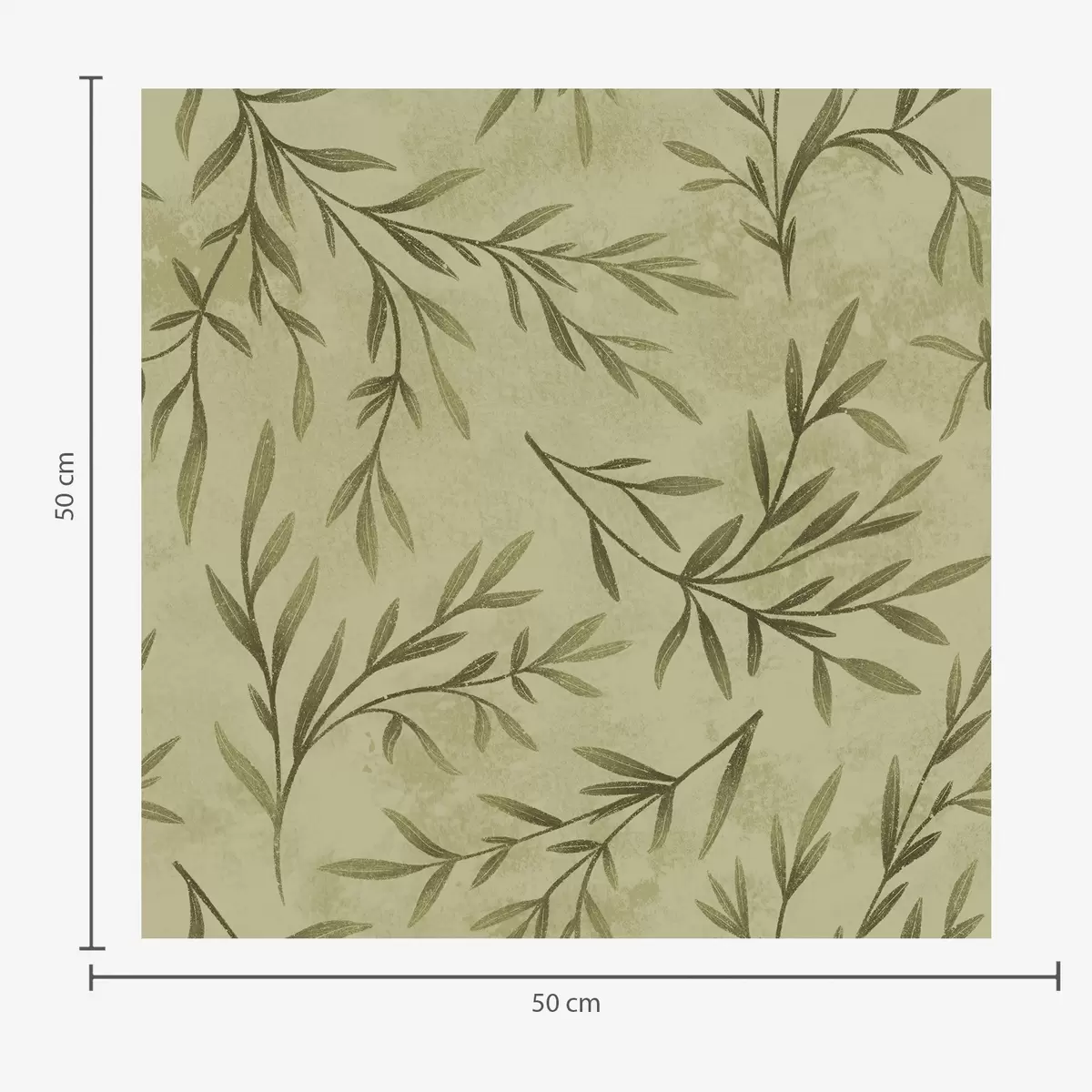 Tapetti Oliivipuun oksat hillityn kelta-vihreällä teksturoidulla pohjalla Nr. a00936