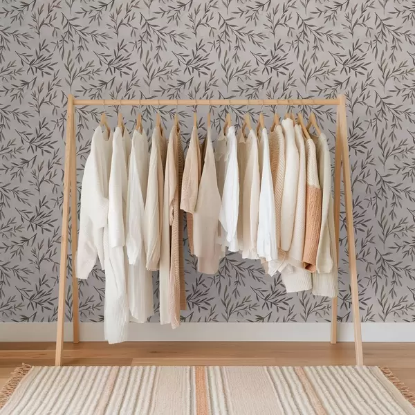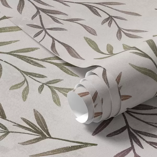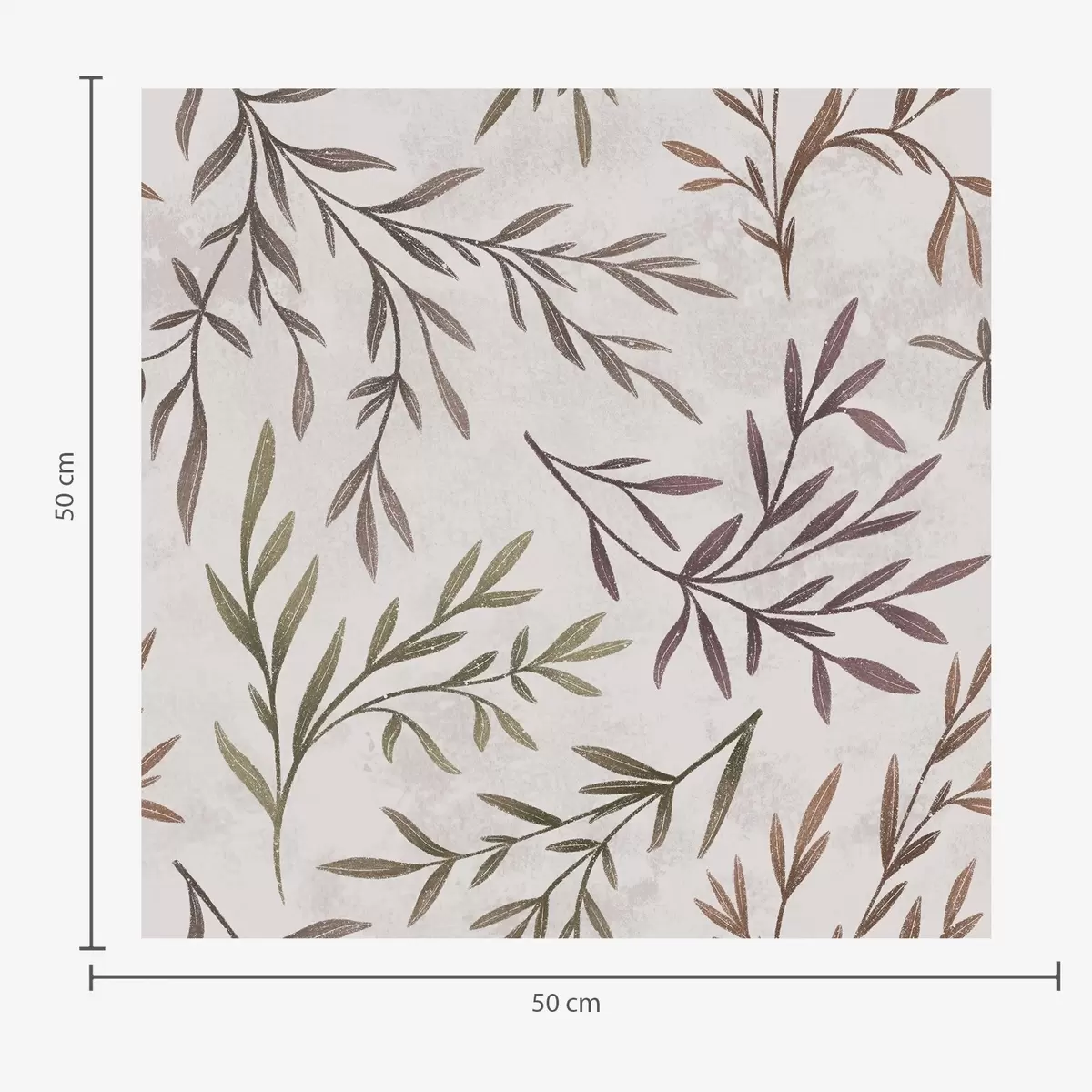 Tapetti Moniväriset oksat ja lehdet vaalealla taustalla Nr. a00936v3