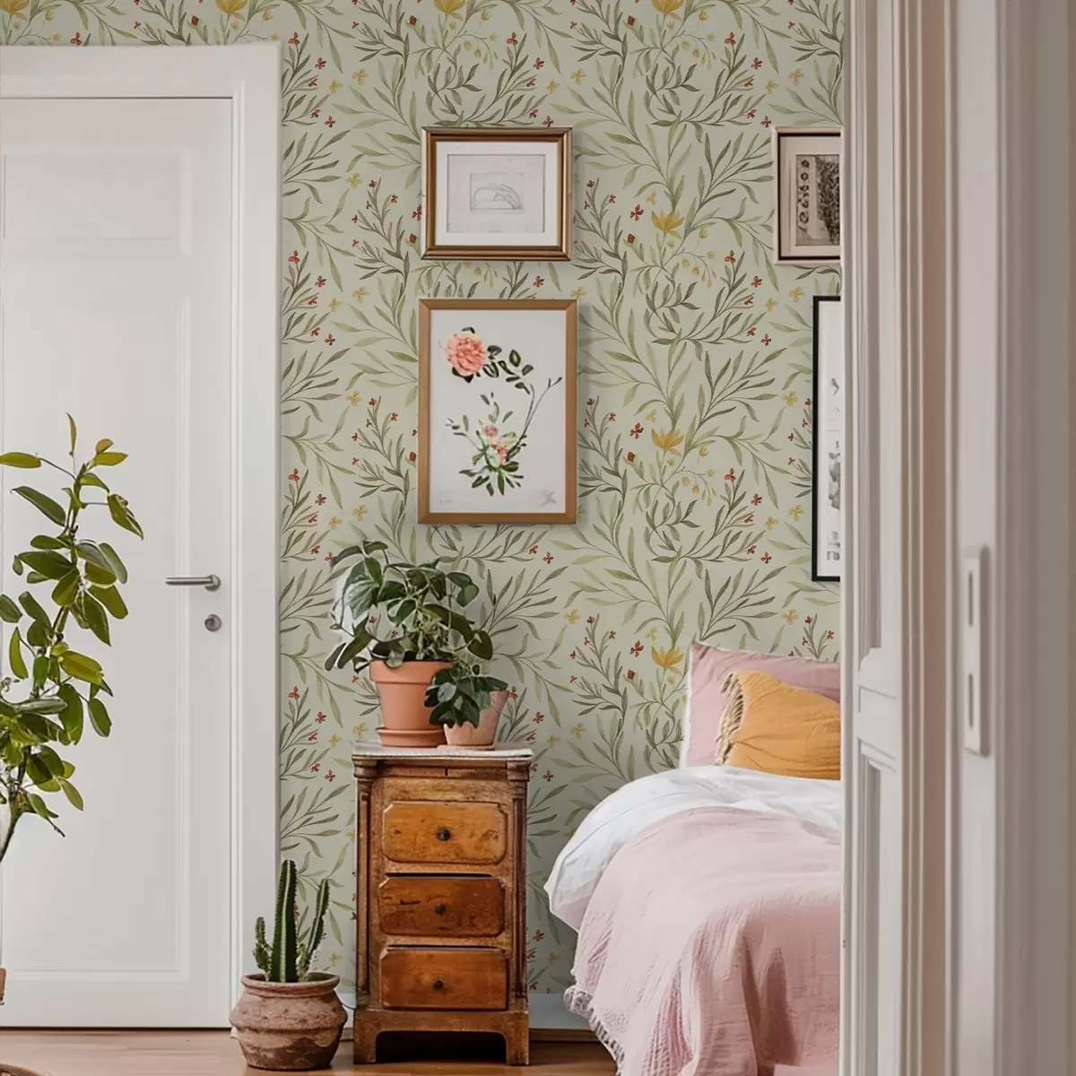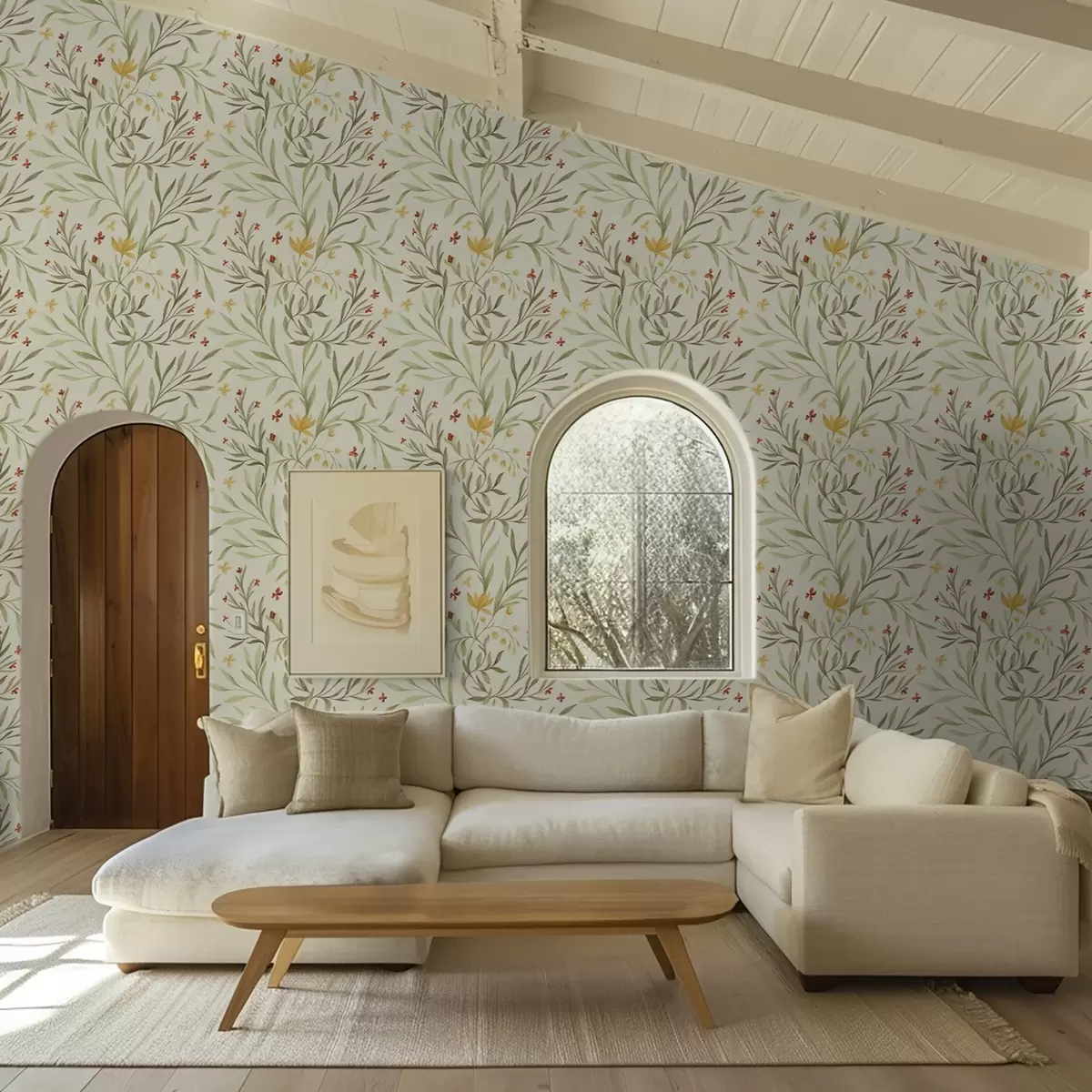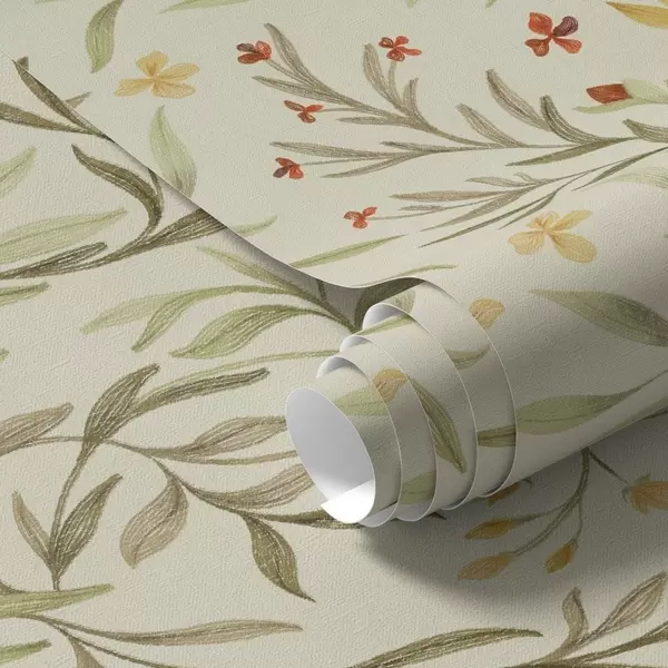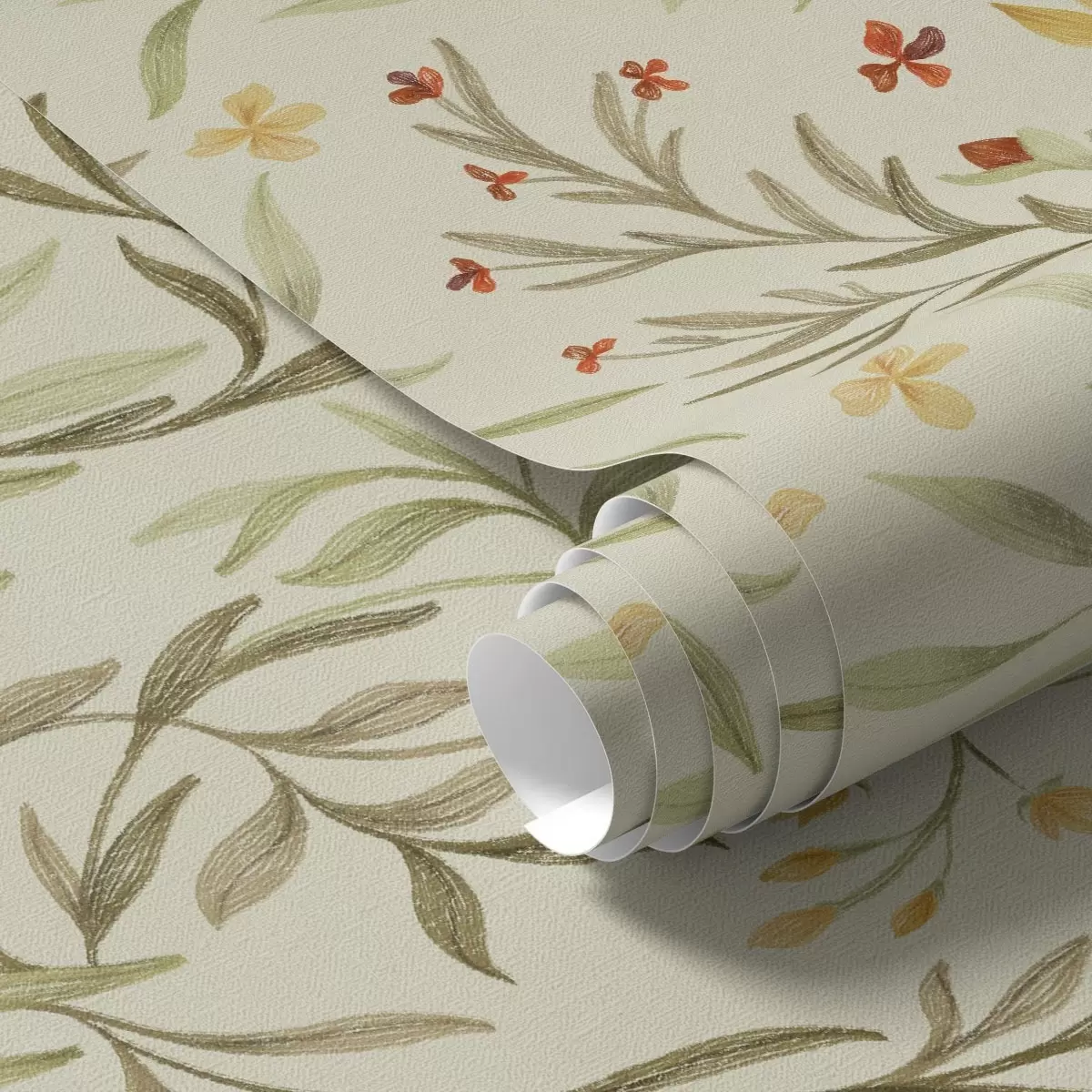 Tapetti Keltaiset ja punaiset kukat vaaleanvihreällä taustalla Nr. a00937