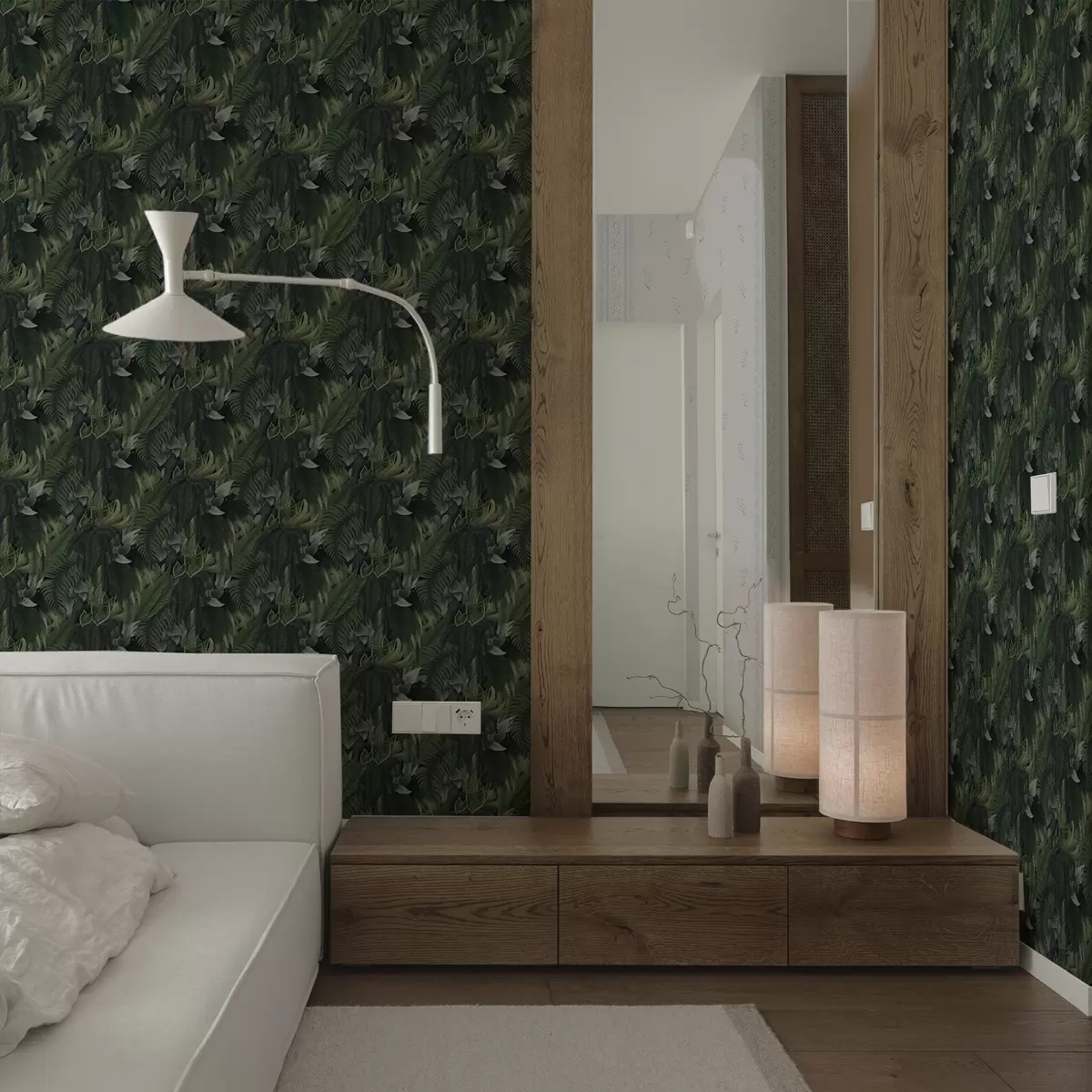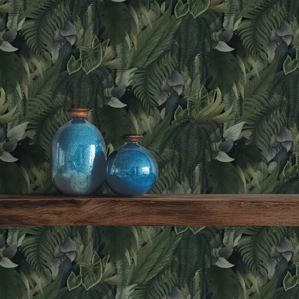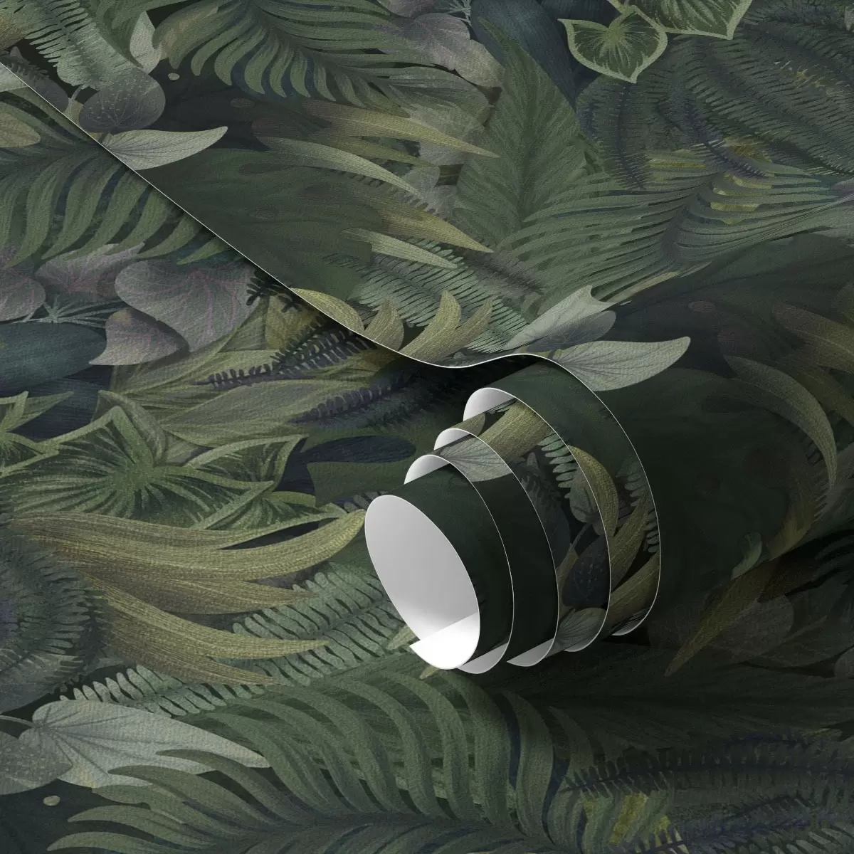 Tapetti Tiheä trooppinen kasvillisuus syvänvihreissä pusikoissa Nr. a00943
