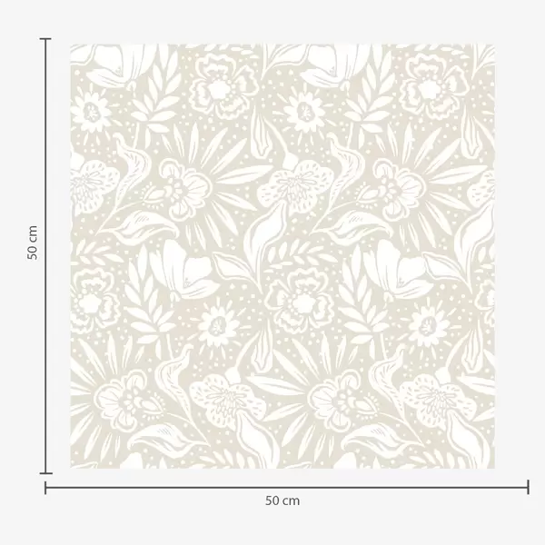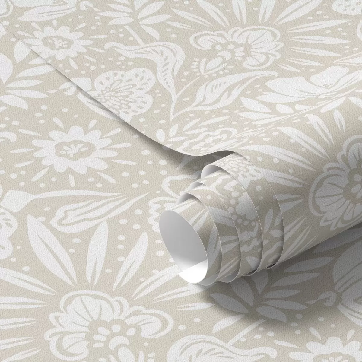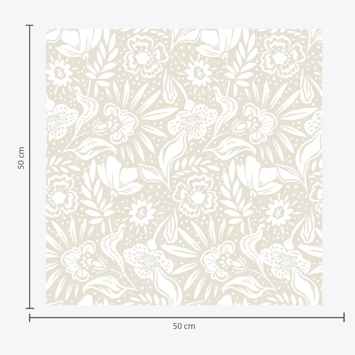 Tapetti Valkoinen lineaarinen kukkakoriste beige-taustalla Nr. a00956
