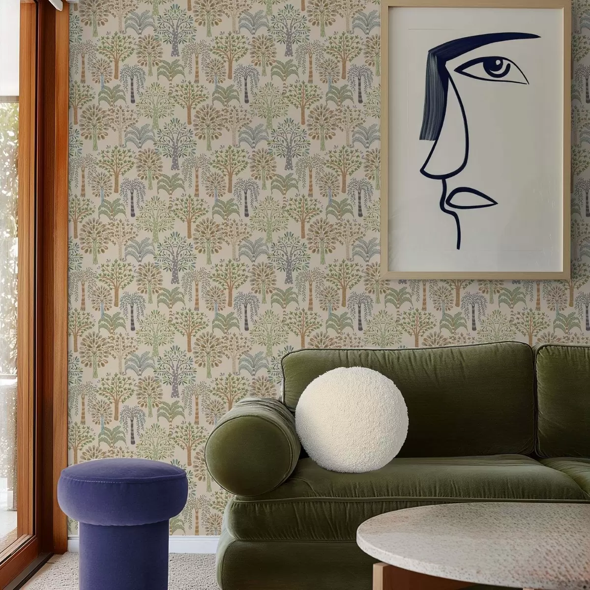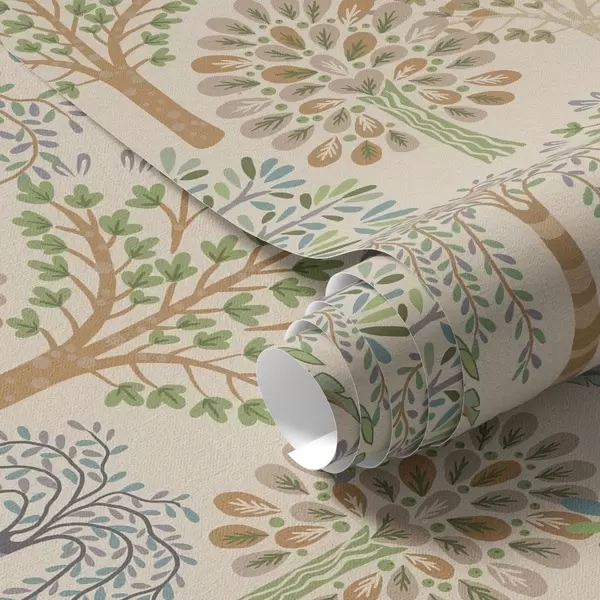 Tapetti Koristepuut pehmeässä luonnollisessa värimaailmassa Nr. a00960