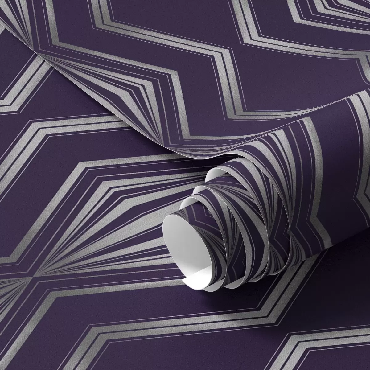 Tapetti Rikas violetti tausta, jossa on timantteja ja harmaita siksak-viivoja Nr. a00974v1