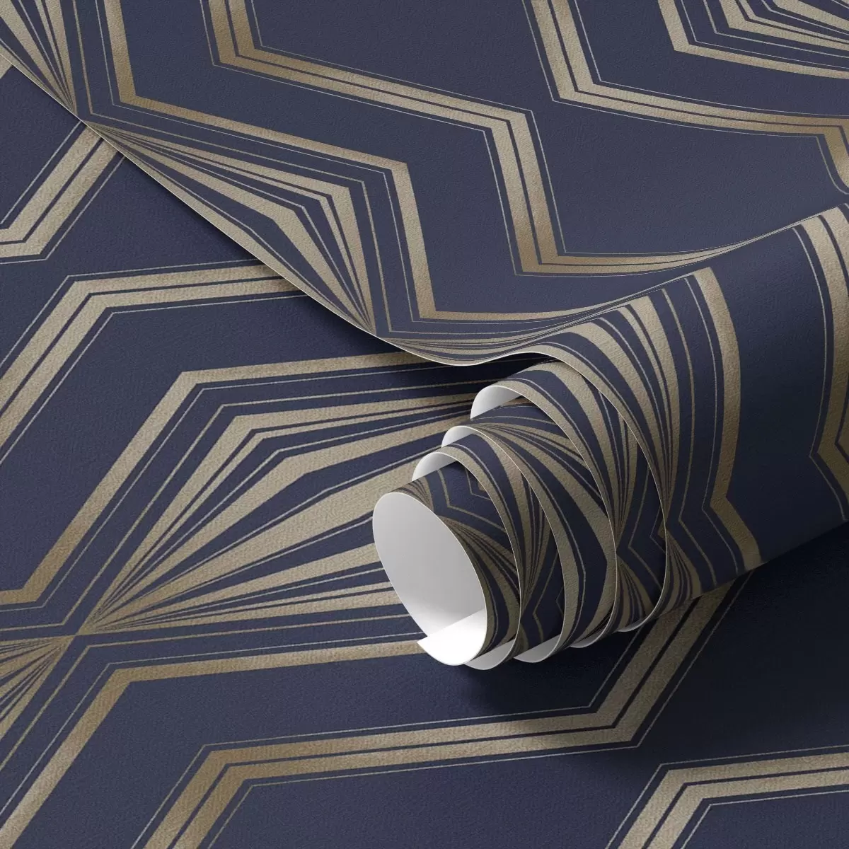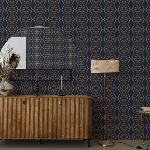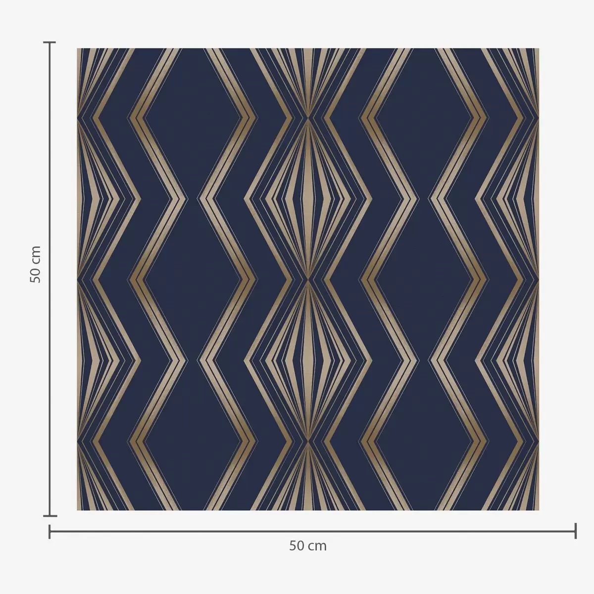 Tapetti Tummansininen tausta, jossa geometrisia rombeja ja siksak-kuvioita Nr. a00974v2