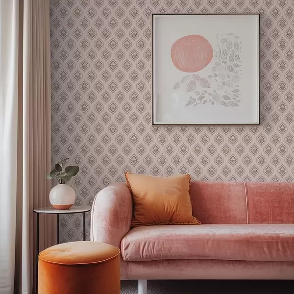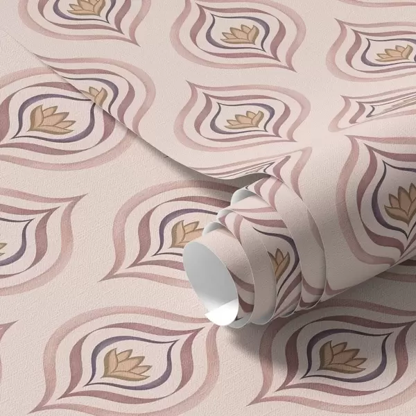 Tapetti Rytminen pisaramotiivi, jossa on kukka jauhemaisella taustalla Nr. a00977