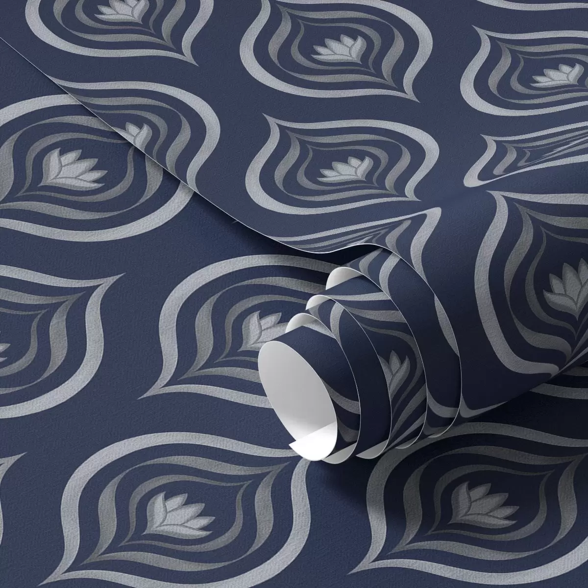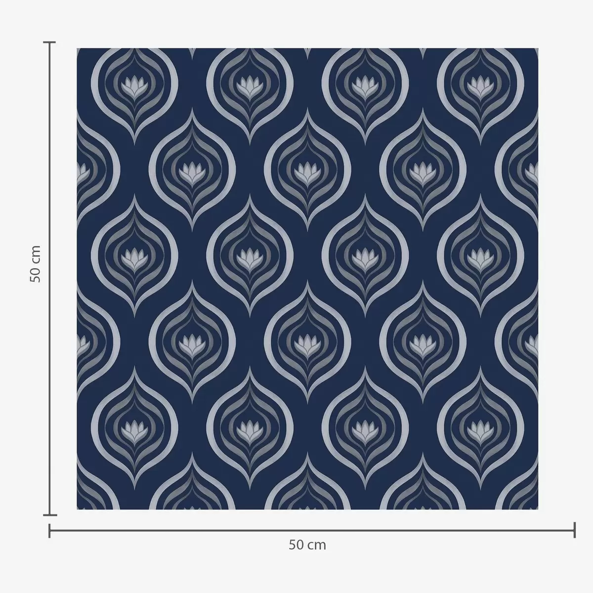 Tapetti Kontrastiset pisaramotiivit ja kukka tummansinisellä taustalla Nr. a00977v1