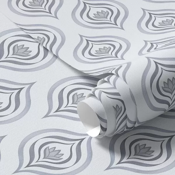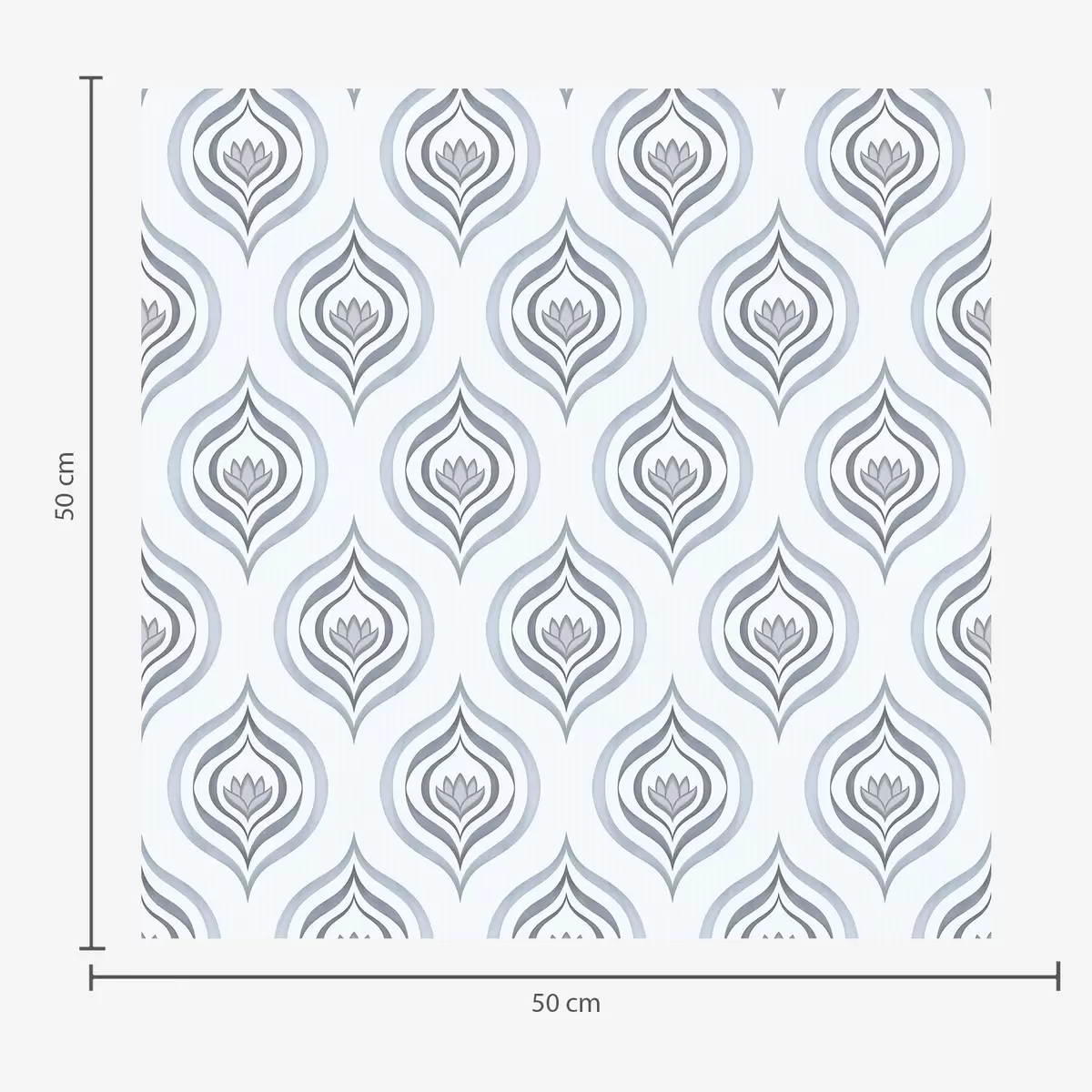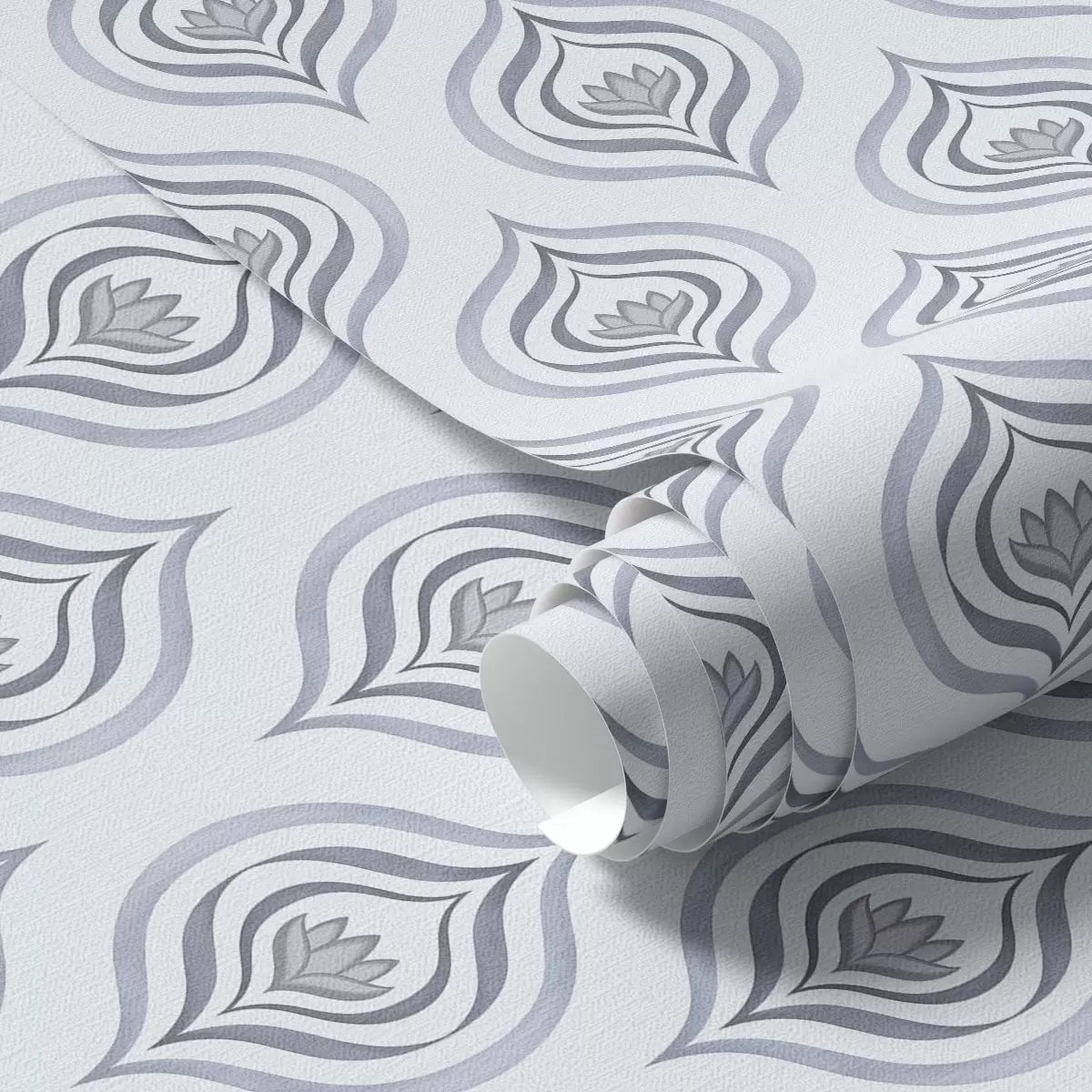 Tapetti Tyylikäs pisaramotiivi, jossa on kukka harmaansinisissä sävyissä Nr. a00977v3