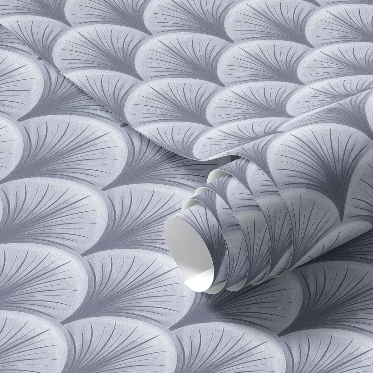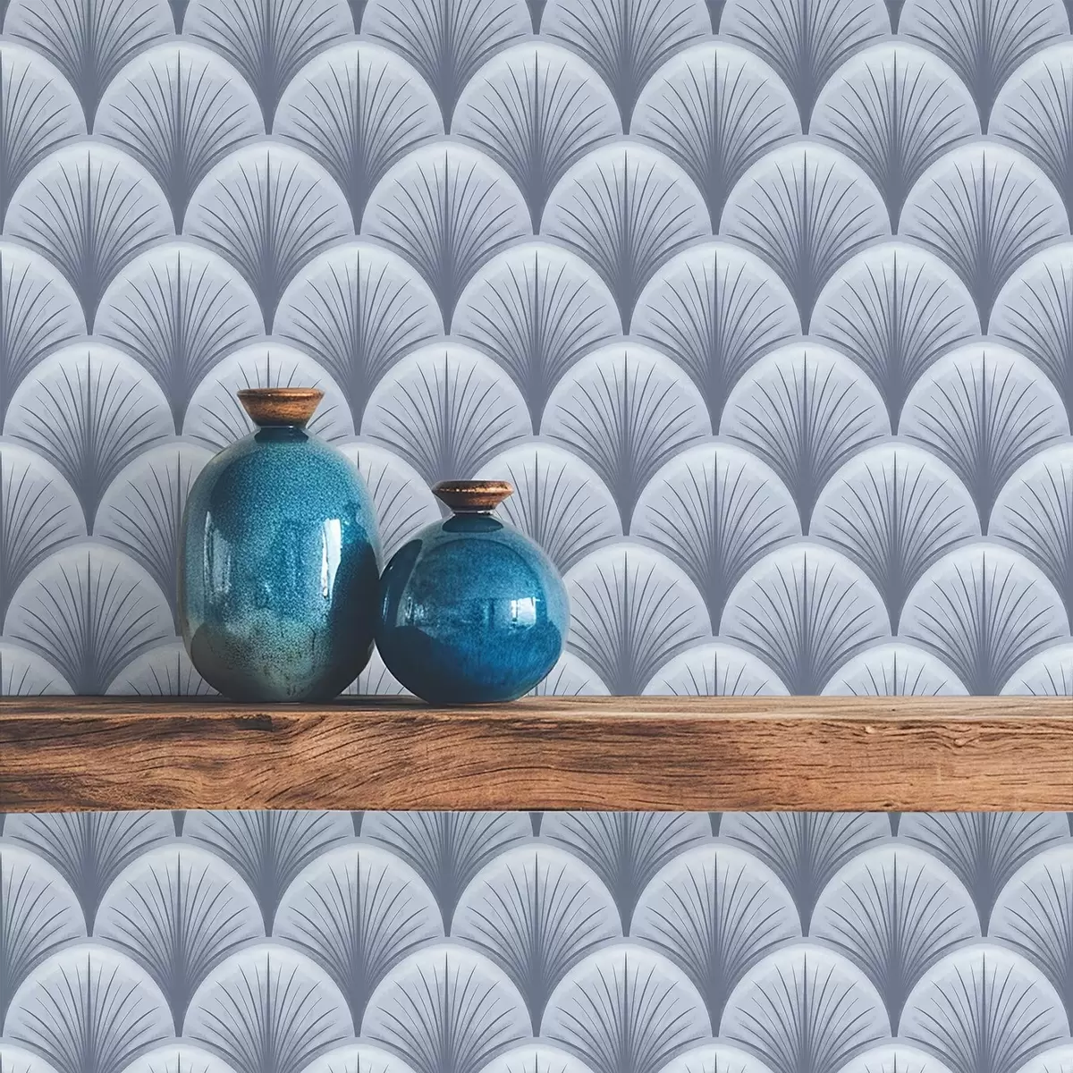 Tapetti Siniset tuulettimen kaaret säteillä vaaleansinisellä taustalla Nr. a00978v1
