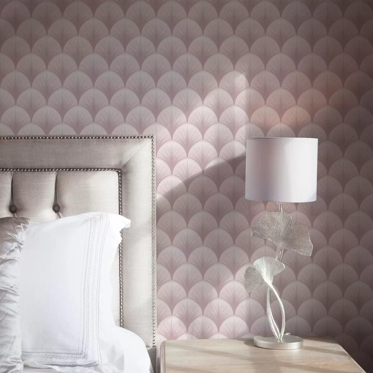 Tapetti Jauhemaisen vaaleanpunaiset tuulettimen kaaret säteittäisillä säteillä Nr. a00978v3