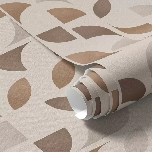 Tapetti Puolipyörien ja lehtien rytmi lämpimissä karamellinruskeissa sävyissä Nr. a00986v1