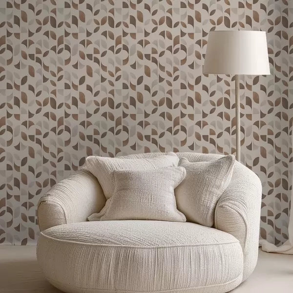 Tapetti Puolipyörien ja lehtien rytmi lämpimissä karamellinruskeissa sävyissä Nr. a00986v1
