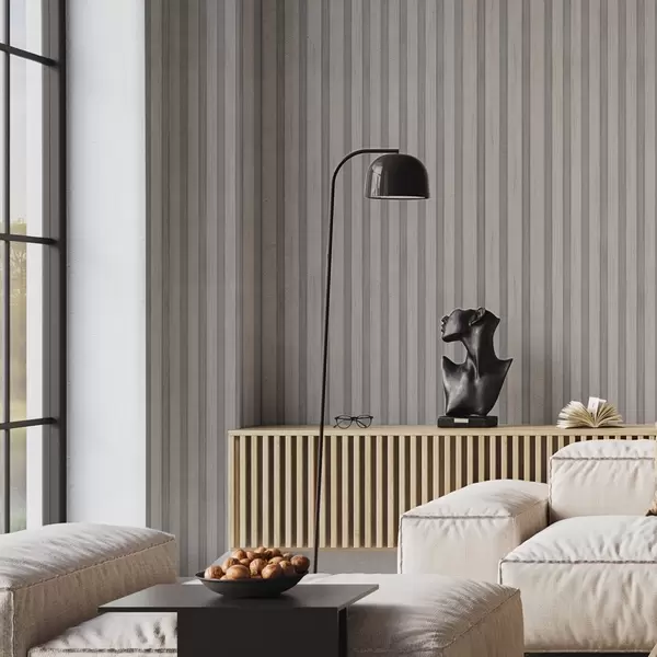 Tapetti Vaaleat puusäleet pehmeillä harmailla raidoilla Nr. a00991v1