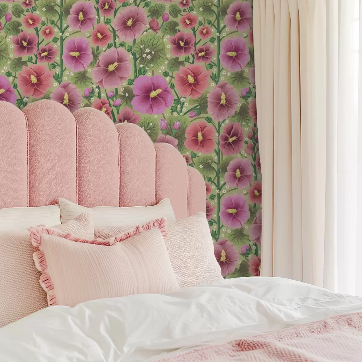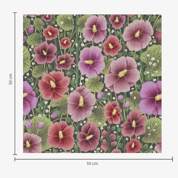 Tapetti Suuret hibiskikukat ja lehdet tummanvihreällä taustalla Nr. a00993