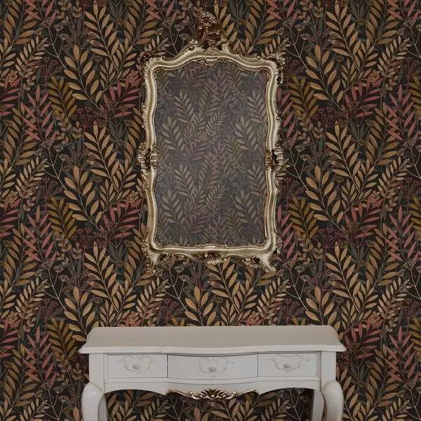 Tapetti Tumma niitty tyylitellyillä lehdillä ja siemenpalkoilla Nr. a01020