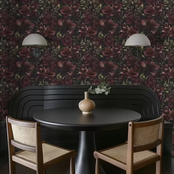 Tapetti Rikkaat viininpunaiset kukat tummalla taustalla Nr. a01032
