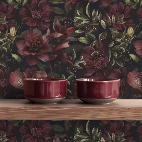 Tapetti Rikkaat viininpunaiset kukat tummalla taustalla Nr. a01032