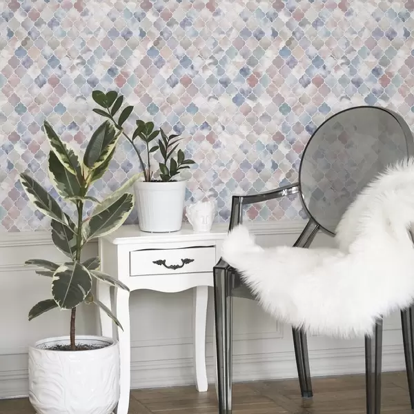 Tapetti Vaalea pastellimosaiikki, jossa on pehmeitä marokkolaisia muotoja Nr. a01039v1