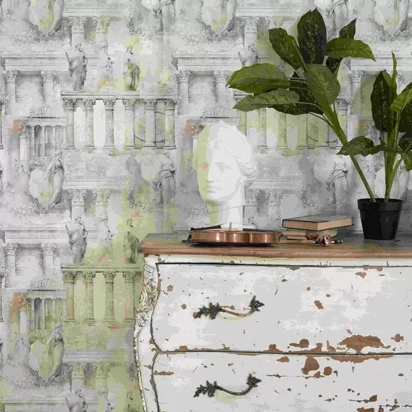 Tapetti Antiikkiset patsaat ja pylväät pehmeissä beige-harmaissa sävyissä Nr. a01041