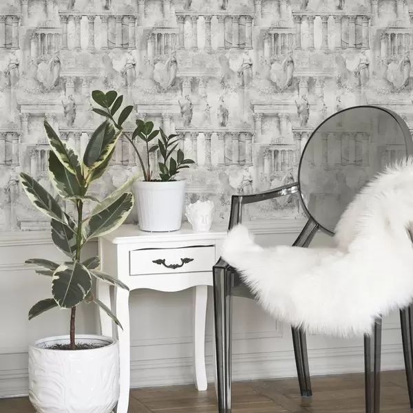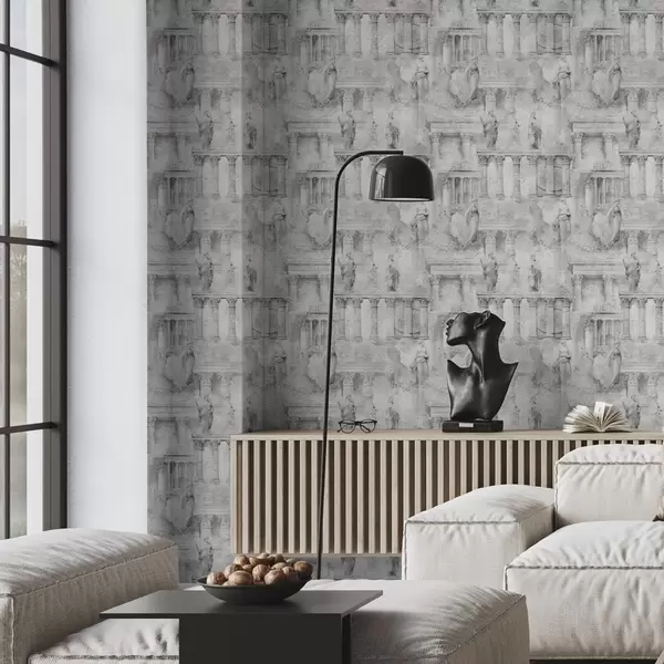 Tapetti Klassiset patsaat ja pylväät haalistuneissa harmaissa sävyissä Nr. a01041v1