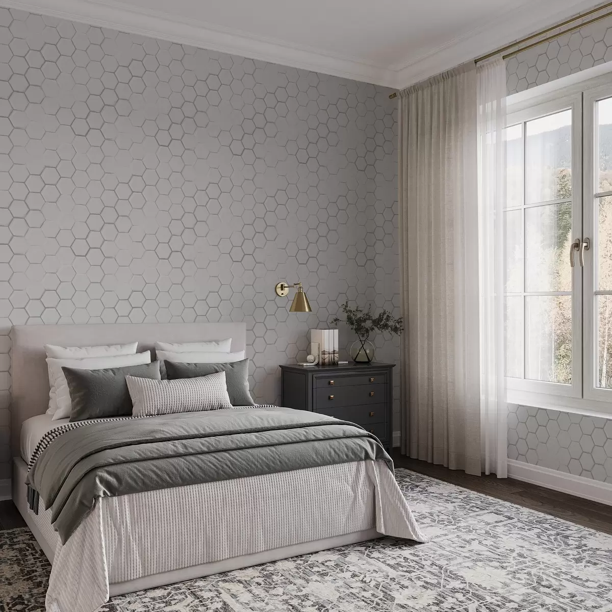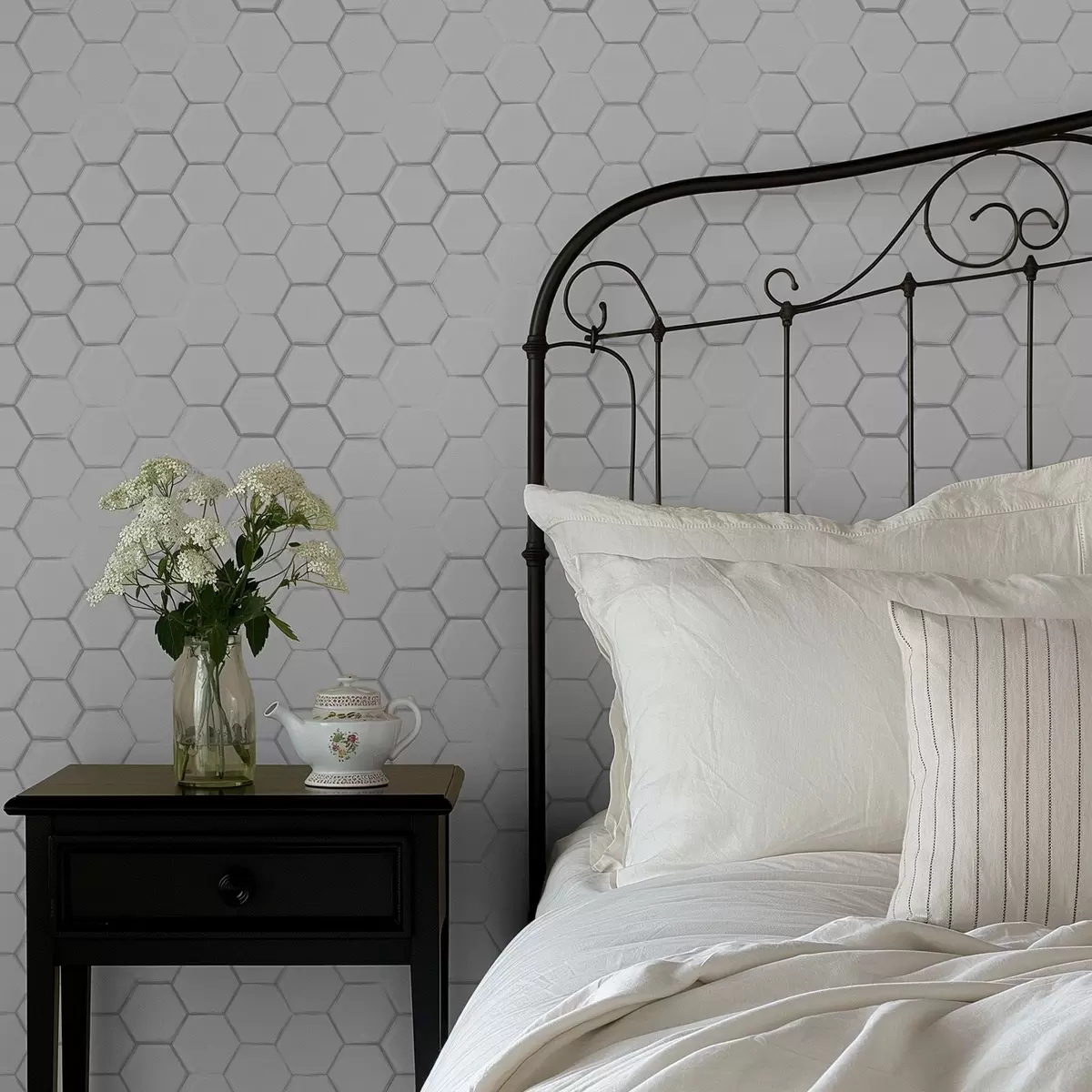 Tapetti Valkoiset kolmiulotteiset kuusikulmiot sileällä taustalla Nr. a01059