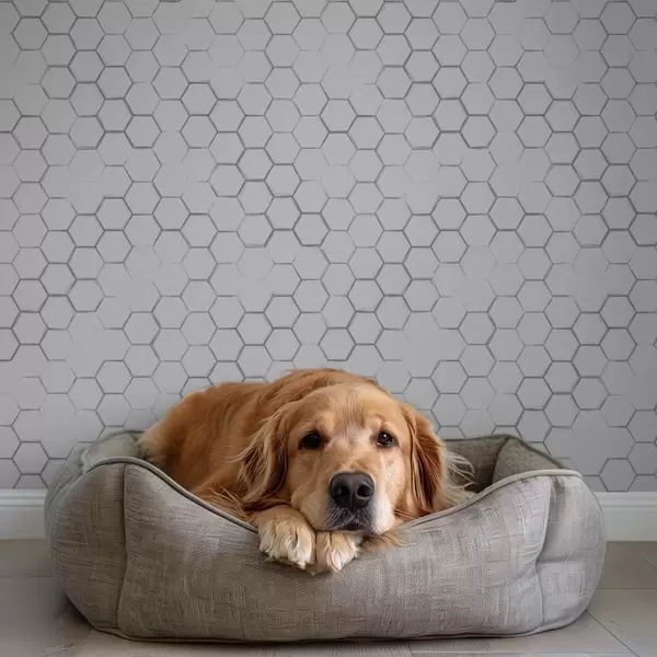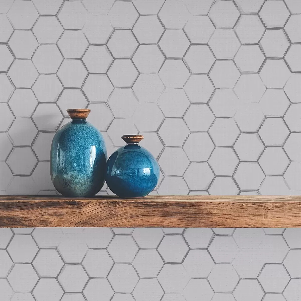 Tapetti Hieno kuusikulmainen ruudukko vaaleanharmaalla teksturoidulla taustalla Nr. a01060
