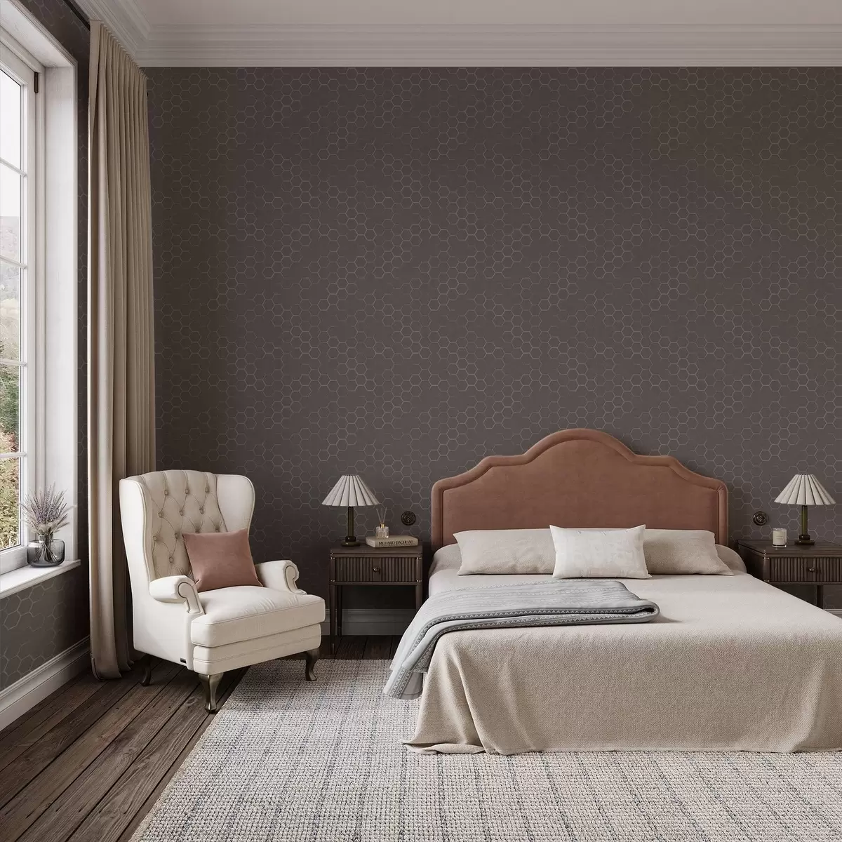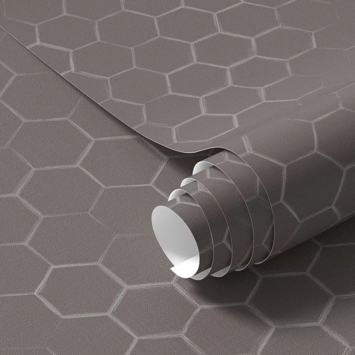 Tapetti Tiheä kuusikulmainen kuvio pehmeissä harmaissa sävyissä Nr. a01060v2