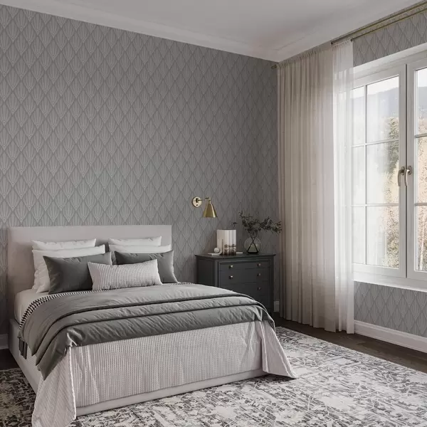 Tapetti Harmaa art deco tuulettimen muotoisilla elementeillä Nr. a01064