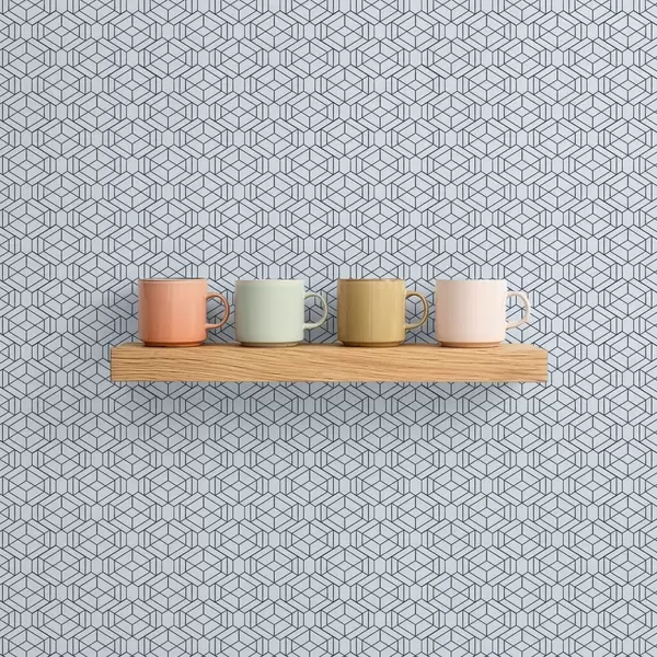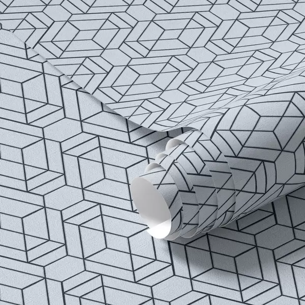 Tapetti Vaaleansininen geometrinen kuutio-kuvio Nr. a01066